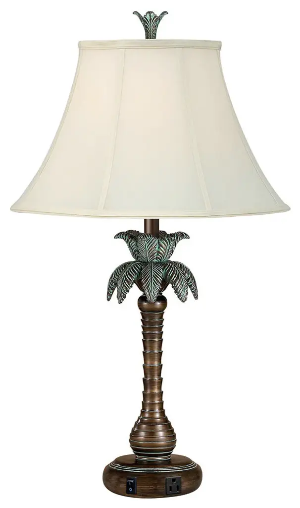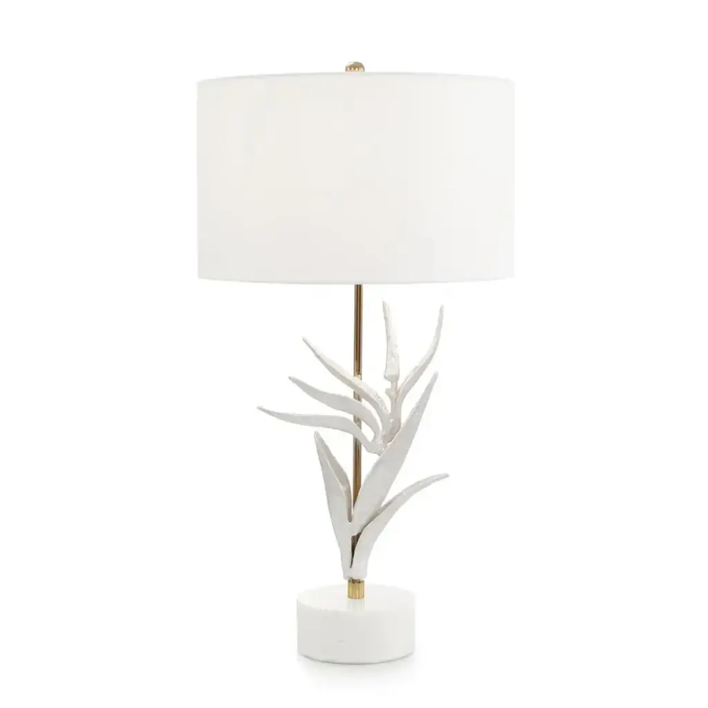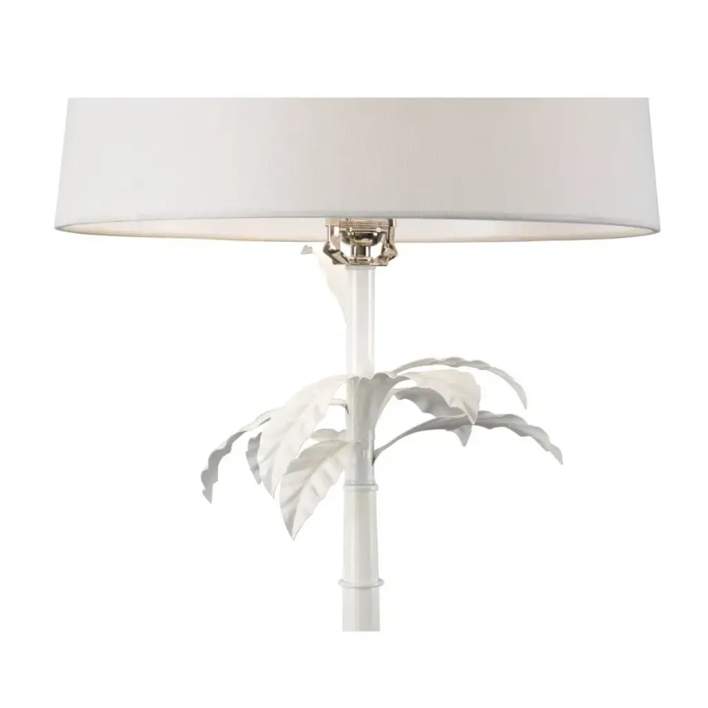 INSPIRED BY THE FOLIAGE ALONG PALM BEACH, PALMA TABLE LAMP FEATURES PALM FROND DETAILS. TOPPED WITH A WHITE LINEN SHADE, THIS COASTAL DESIGN BY MEG BRAFF DESIGNS WILL BRIGHTEN THE ENTRYWAY, BEDROOM OR LIVING AREA IN YOUR WATERFRONT HOME.