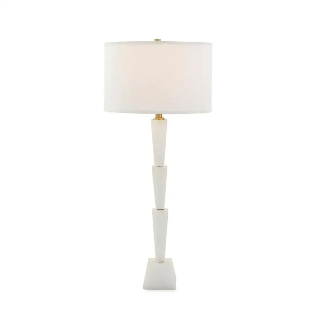 Montaigne Medium Table Lamp in New White with Linen Shade