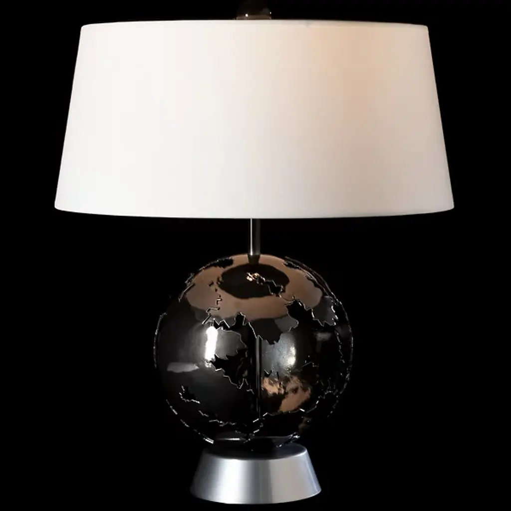 The brutalist approach feels like an appropriate choice for evoking the primordial. And that’s just the effect given off by the Pangea Table Lamp by Hubbardton Forge. The body was crafted to represent an Earth from a very long time ago, with the continents as we know them not yet formed. Jagged curves of steel overlap to suggest land masses colliding and coming together. This distinctive, textural globe sits atop a sleek, pedestal-like base. Designed by David Martin.