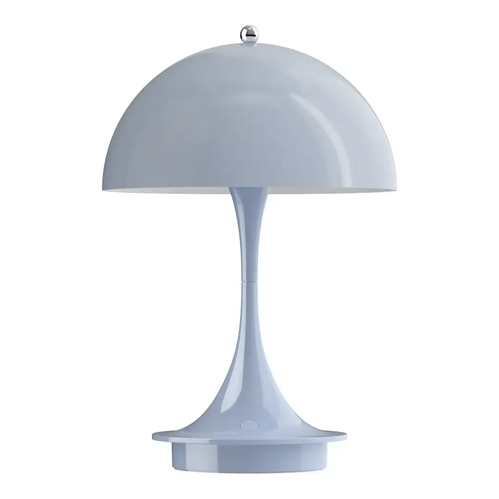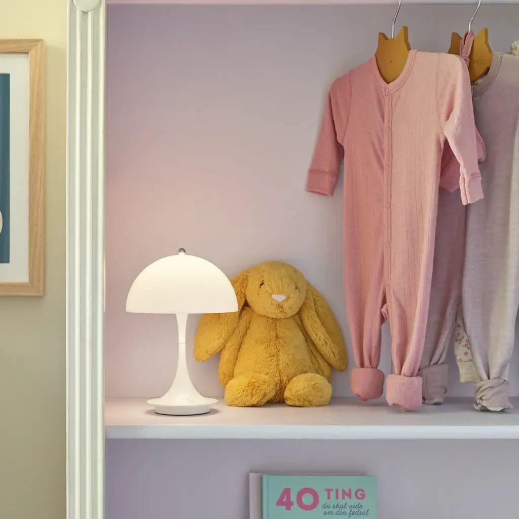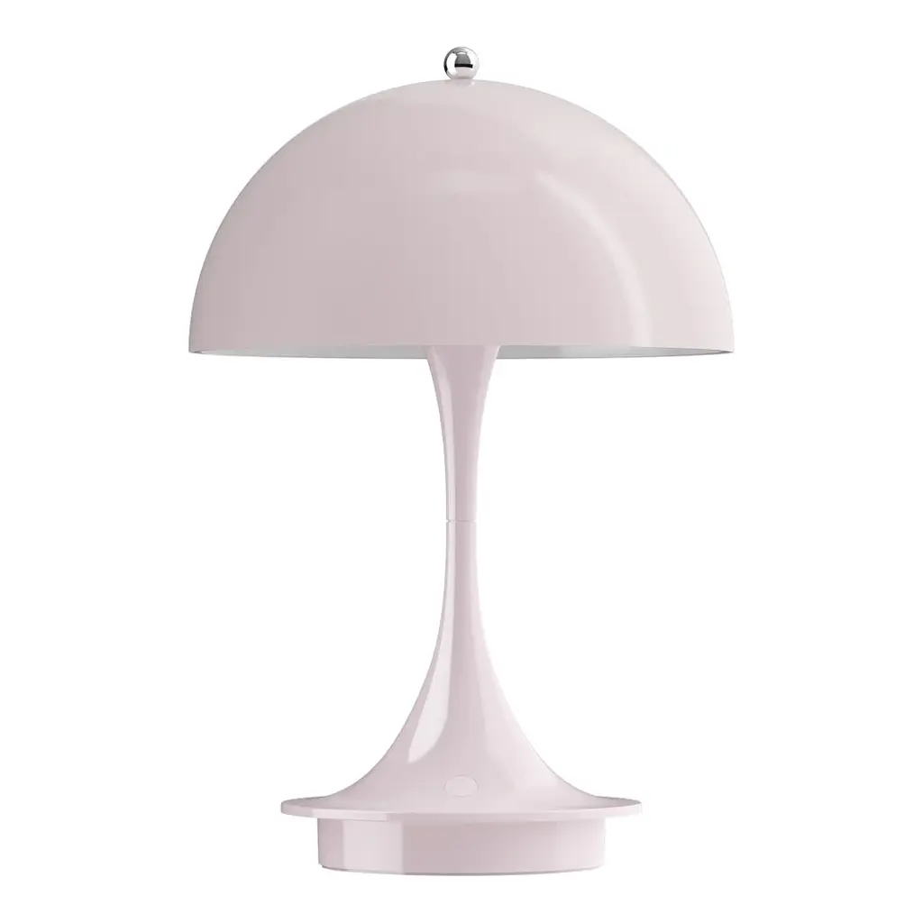 The fixture lights up any space harmoniously without glare. The portable table lamp is available in opal, and the transparency of the shade and the reflection of the downward light on the inner side of the shade provides a gentle light and subtle ambience.