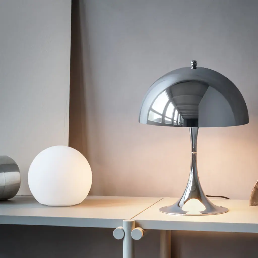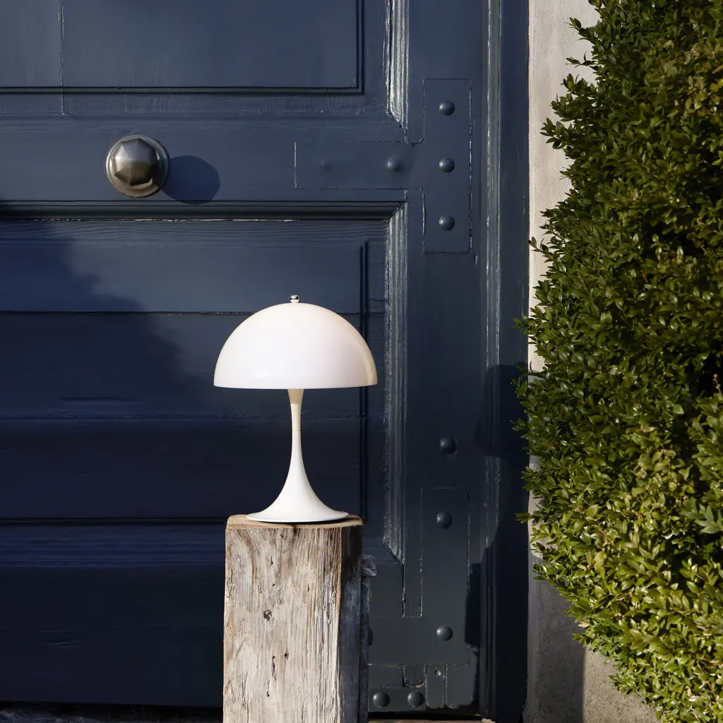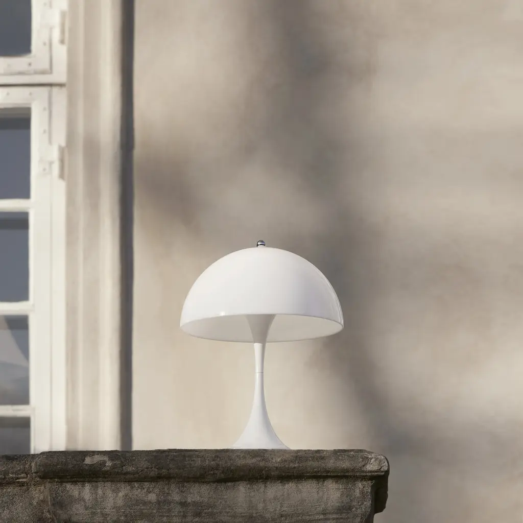 A scaled-down version of Verner Panton’s iconic 1971 creation, Panthella 250 makes for easy placement on windowsills, shelves or tables while it provides soft, glare-free illumination. The lamp is offered in colored metal with the inside of the shade painted white to direct the light directly downwards, bouncing off the trumpet-shaped stem or In opal acrylic models that produce a diffused reflected glow.