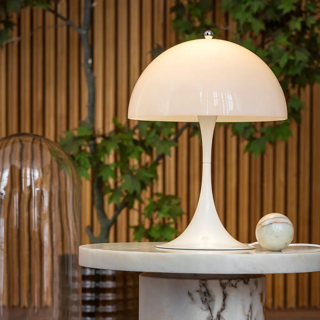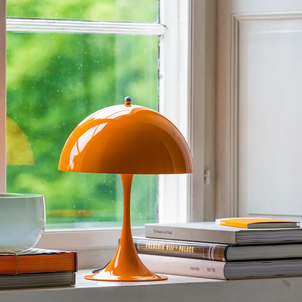The Panthella Mini Table Lamp is a scaled down version of Verner Panton's original masterpiece. This innovative lamp features vibrant colors drawn from the last project Verner Panton was working on before his death in 1998: the 'Lyset og Farven' ('Light and Color') exhibition, hosted at Trapholt Museum of Modern Art in Kolding, Denmark. Verner Panton originally developed the Panthella lamp in partnership with Louis Poulsen in 1971. He originally wanted to have Panthella launched with a metal shade, but this was not technologically possible at that time. In other words, the Panthella MINI is a world first, based on Verner Panton's original drawings," relates Rasmus Markholt, Design Manager at Louis Poulsen. The Panthella Mini emits a soft and comfortable light downwards to ensure the majority of the light is spread diffusely in the room from the surface of the shade. Can be set to one of three light intensities using the touch in-line Switch.