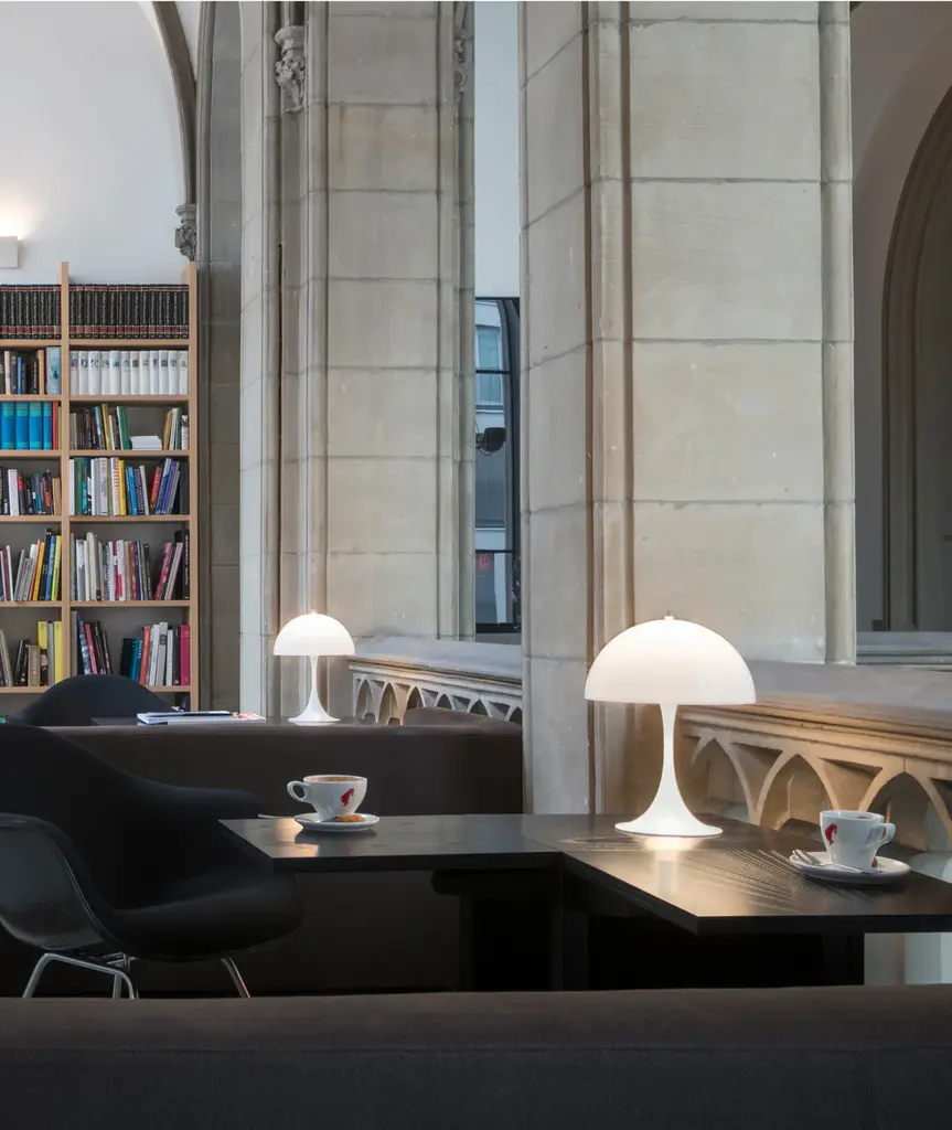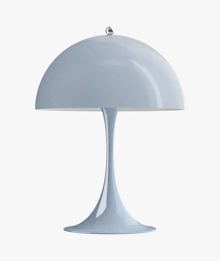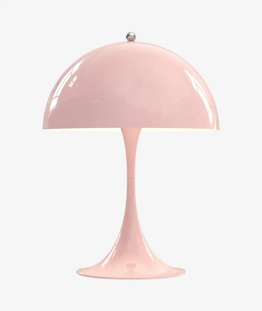 This fixture emits a soft, comfortable, glare-free, light. The metal-shade versions direct the light directly downward, creating a pleasant illumination due to the inner white-painted shade and the reflection from the trumpet-shaped stem. The opal acrylic produces a diffused, comfortable light due to the translucent shade, the downward reflection from the inner shade, and the reflection from the trumpet-shaped stem. Electrical: System Wattage: 10W LED Wattage: 9W Delivered lumens: 428-589 Efficacy: 42 - 58 lm/W (LED) Certifications: cULus, Dry Location Protection class IP20 Controllability: Continuous dimming by touch switch on cord. Color Rendering: Ra≥90 Mounting: Cable type: White for brass, pale rose and white finishes; Black for other finishes. Cable length: 8'. LED-driver: Separate, plugs into power outlet. Light control: In-line switch. Auto shut-off timer: 4 hours/8 hours. Continuous dimming from 15% to 100%.Finish: White Opal Acrylic shade with white stand. Gray Opal Acrylic shade with high-luster chrome stand. High-Luster Vhrome shade and stand. Metalized Brass shade and stand. White, Black, or Orange shade and stand, Powder-coated. Materials: Shade: Injection-molded acrylic or deep-drawn steel. Base and housing: Cast aluminum. Diffuser: Injection-molded opal pmma.