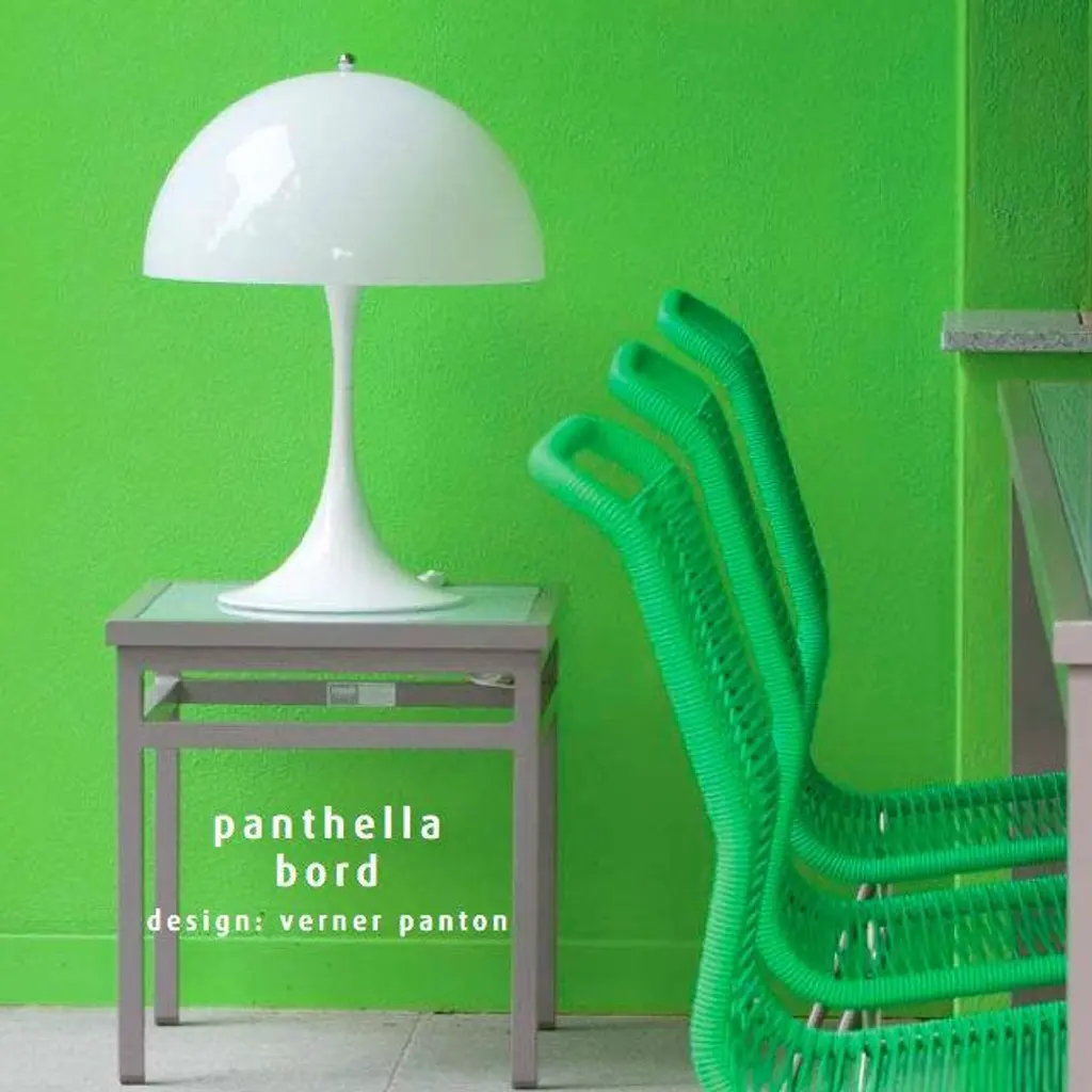 Created in 1971, Verner Panton's Panthella is one of his more popular designs. The basic light principle aimed to create a lamp in which the base as well as the shade would act as a reflector. The lamps light source is hidden under a milky-white, hemispheric acrylic shade and a white, trumpet-like base contributes to a beautiful distribution of light and a well balanced form.