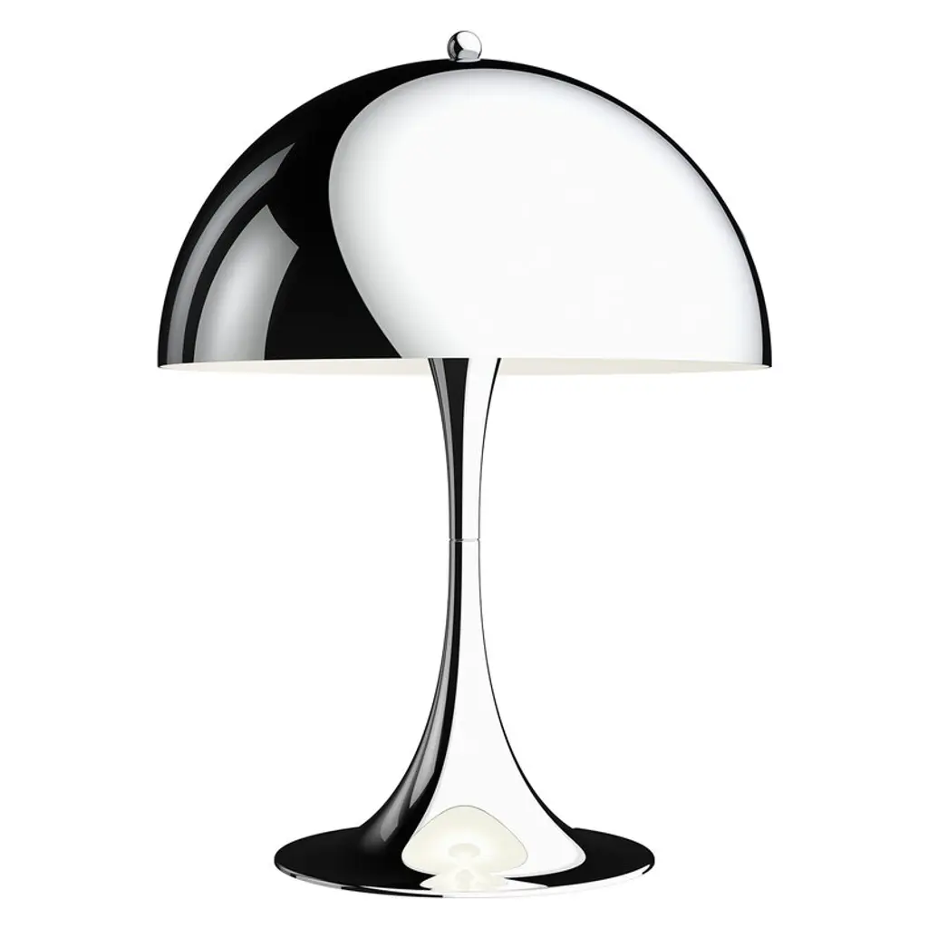 The Panthella LED Table Lamp from Louis Poulsen uses Verner Panton's original drawings to produce an organically shaped lamp with a metal shade. Initially designed in 1971, the design was created at a time when it was not technologically feasible to produce a lamp following Panton's first drawings. This 2016 introduction is made with an eye towards sustainably and features a metal shade with state-of-the-art LED technology with timing cutoffs, inside instead of a glass shade. Panton developed Panthella with a pleasant organic shape and a rounded shade to reflect light downwards so that it diffuses evenly throughout any room. This small table lamp gives soft illumination ideal for areas like window sills, shelves, side tables, and other smaller surfaces in modern or retro-modern homes.