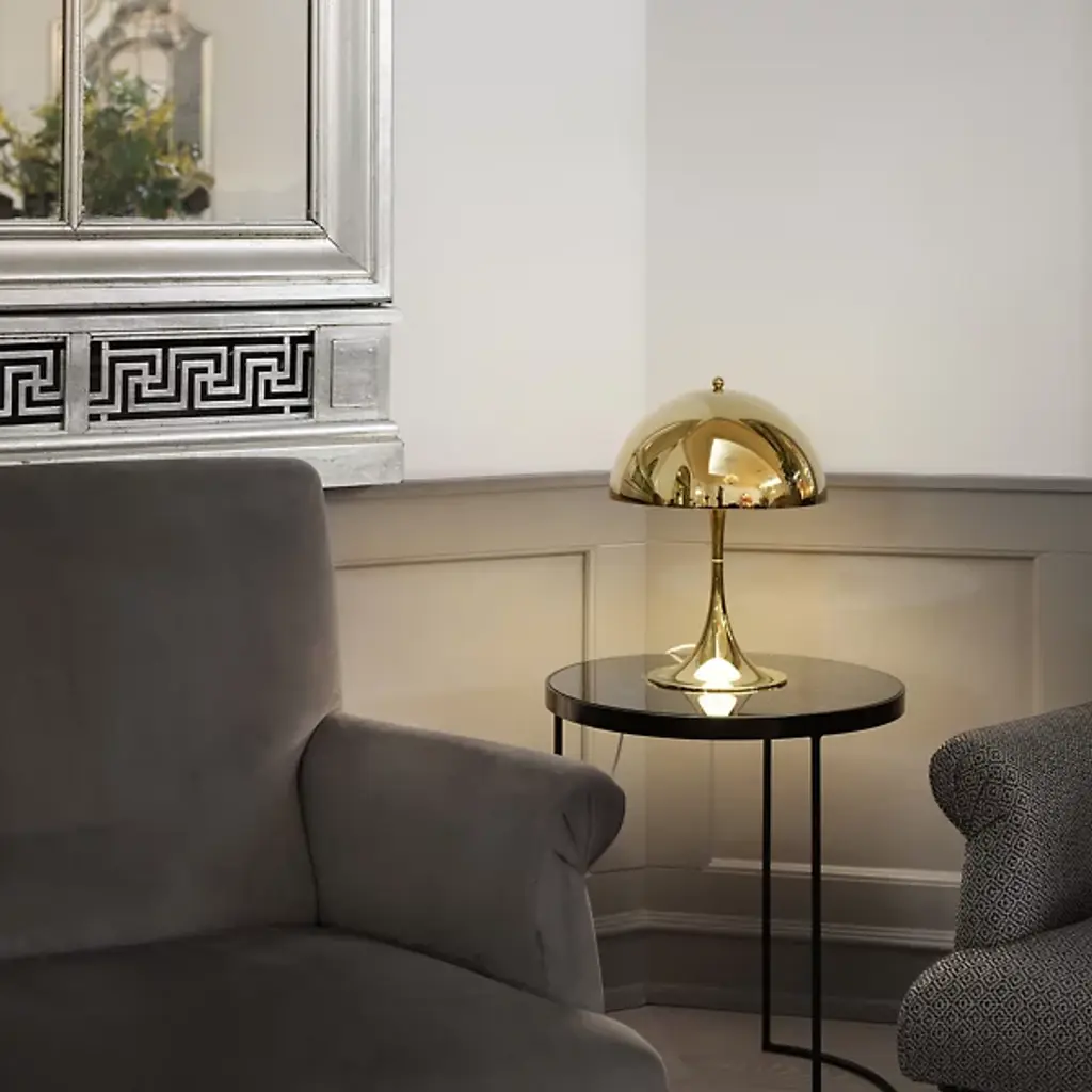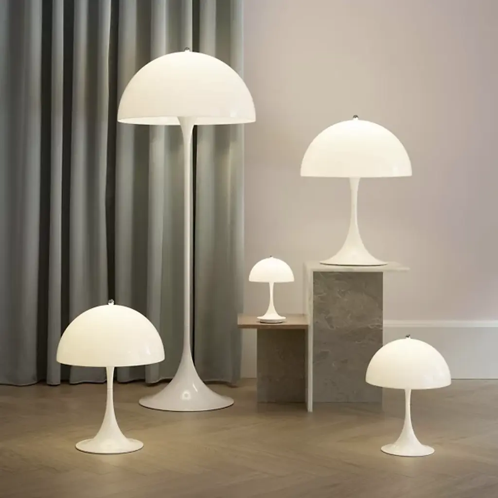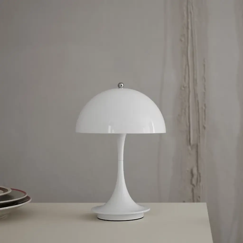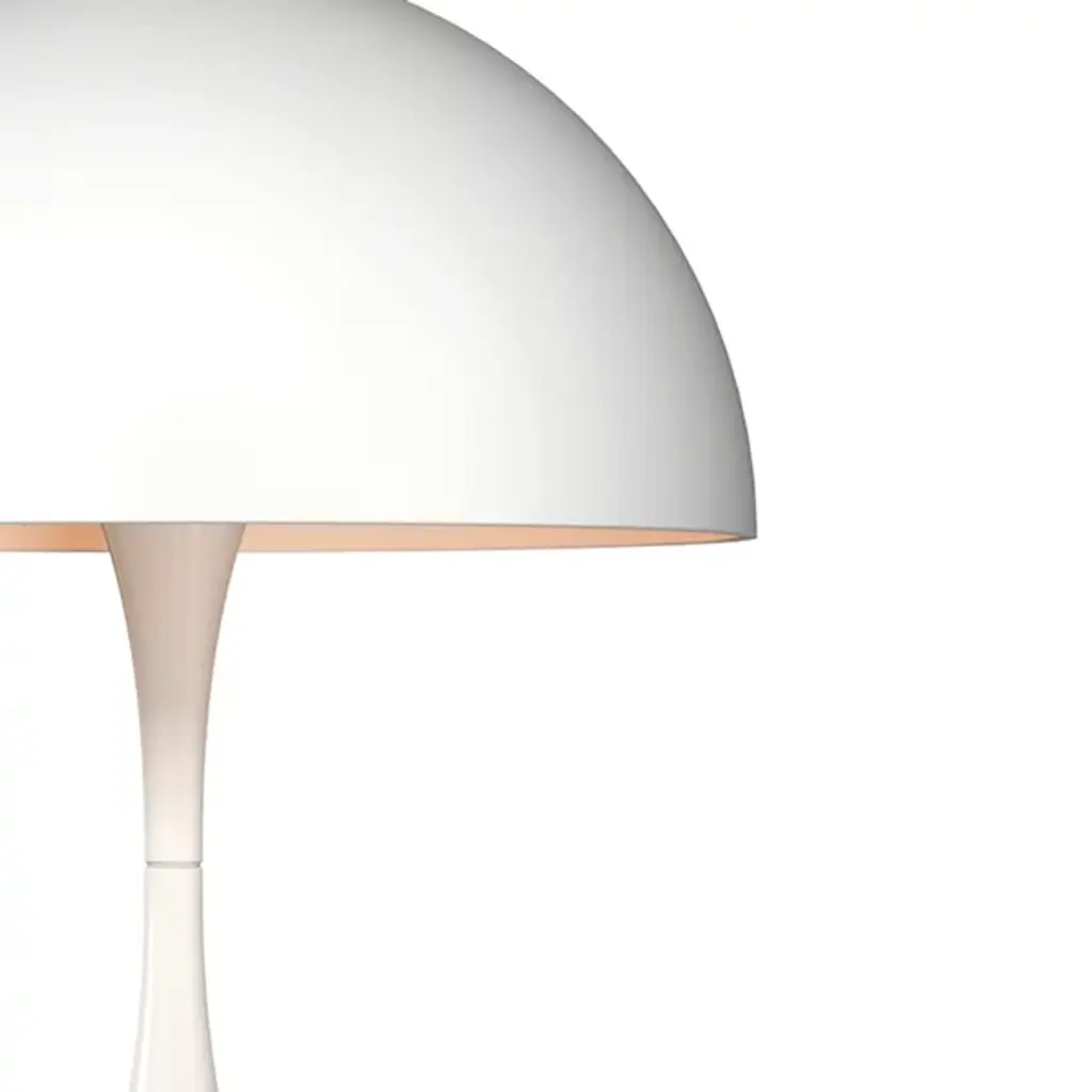 The Panthella LED Table Lamp from Louis Poulsen uses Verner Panton's original drawings to produce an organically shaped lamp with a metal shade. Initially designed in 1971, the design was created at a time when it was not technologically feasible to produce a lamp following Panton's first drawings. This 2016 introduction is made with an eye towards sustainably and features a metal shade with state-of-the-art LED technology with timing cutoffs, inside instead of a glass shade. Panton developed Panthella with a pleasant organic shape and a rounded shade to reflect light downwards so that it diffuses evenly throughout any room. This small table lamp gives soft illumination ideal for areas like window sills, shelves, side tables, and other smaller surfaces in modern or retro-modern homes.