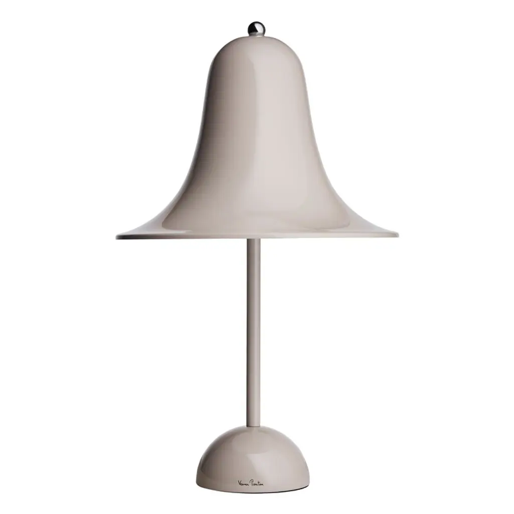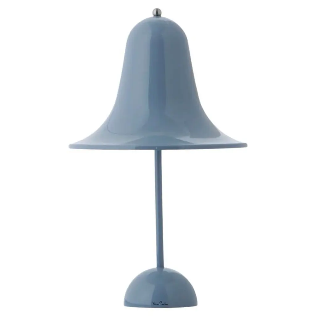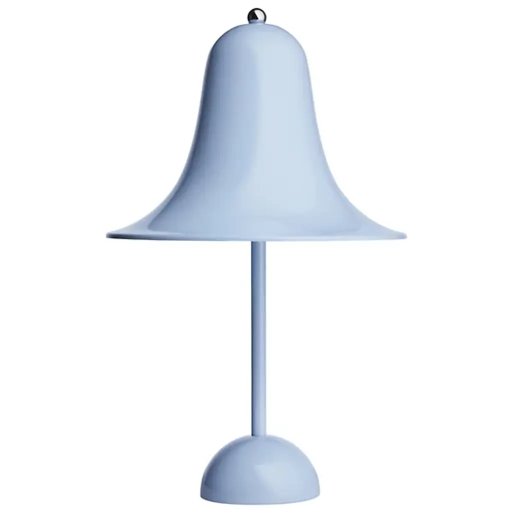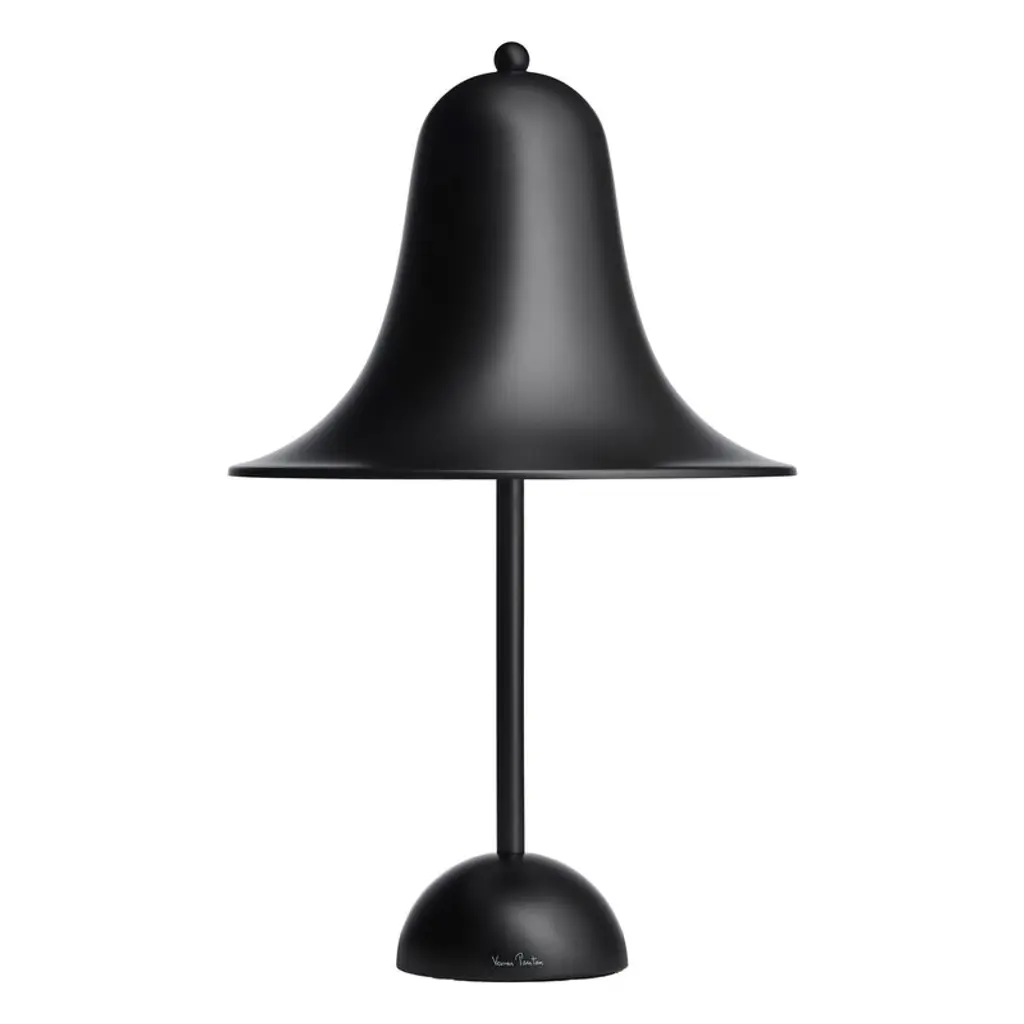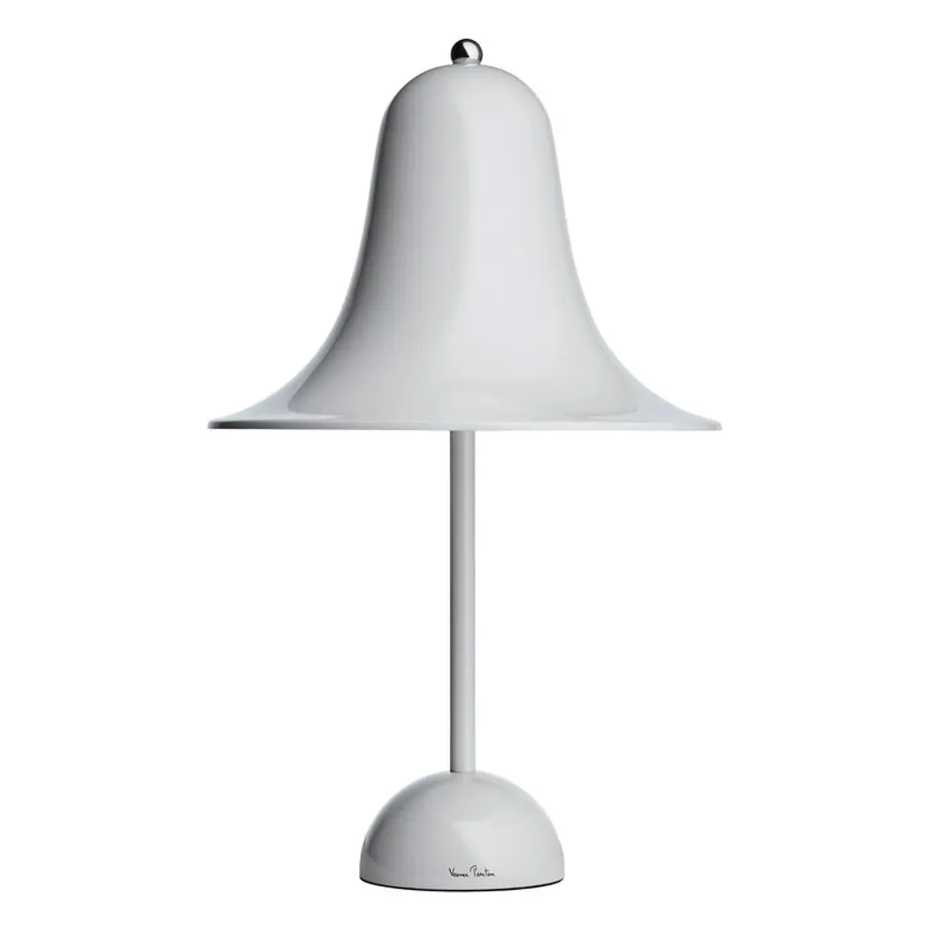 Designed by Verner Panton in 1980 and today manufactured by Verpan, the Pantop table lamp is a fine example of Panton’s style in the late 20th century. Pantop features a flaring, bell-shaped lampshade that directs the light right underneath. The hemisphere-shaped base complements the geometric look of the luminaire. Pantop is both a joyful and elegant design icon that catches the eye either individually or in clusters.