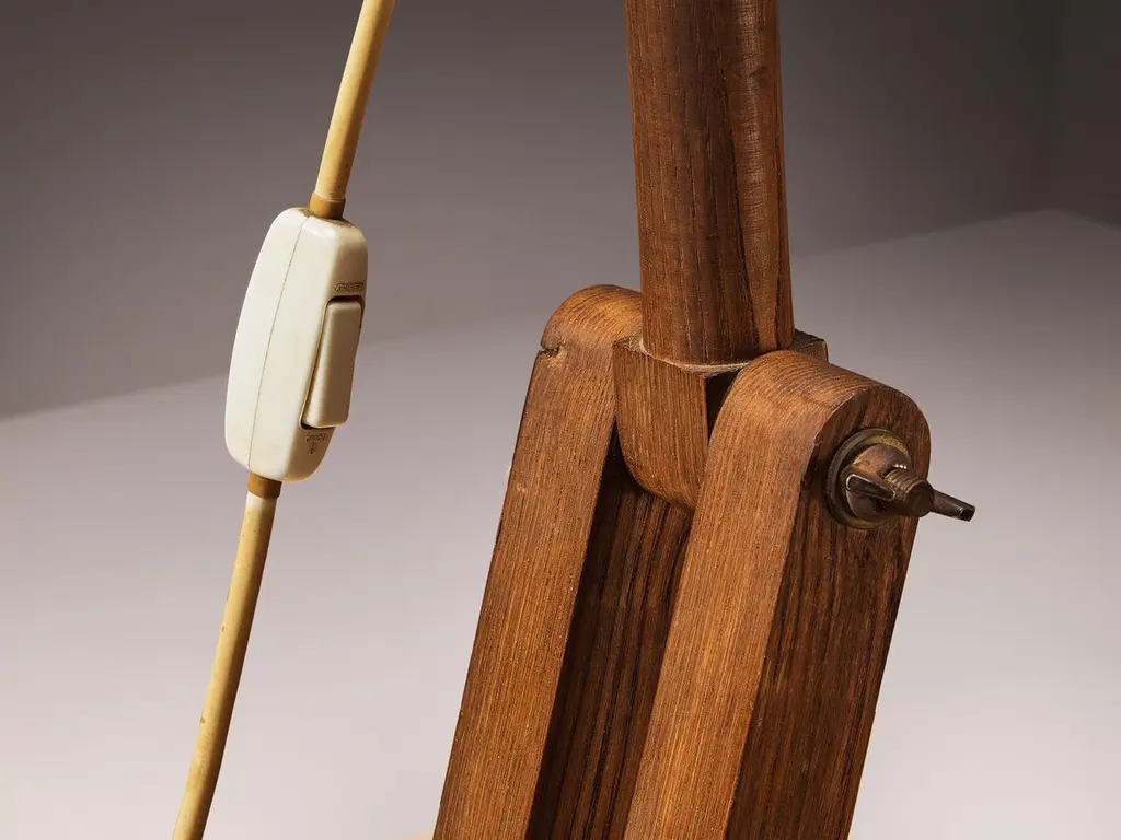 Paolo Pallucco for Pallucco Roma, desk lamp, chestnut, Italy, 1960sA distinctive clamp desk lamp, thoughtfully designed by Paolo Pallucco, not only offers functionality but also visual appeal. Crafted from solid chestnut, it features a square-shaped clamp as its base, from which sturdy rods extend to support the rounded shade at the top. The upper shade is adjustable, allowing for easy up-and-down movement, akin to the mechanism used in the clamp base. This organic and brutalist lamp is a breath of fresh air in a modern and contemporary interior.Please note that these items are in good, used condition with signs of wear, including scratches. For further details, we encourage you to reach out to our team of design specialists. The price listed is per item.