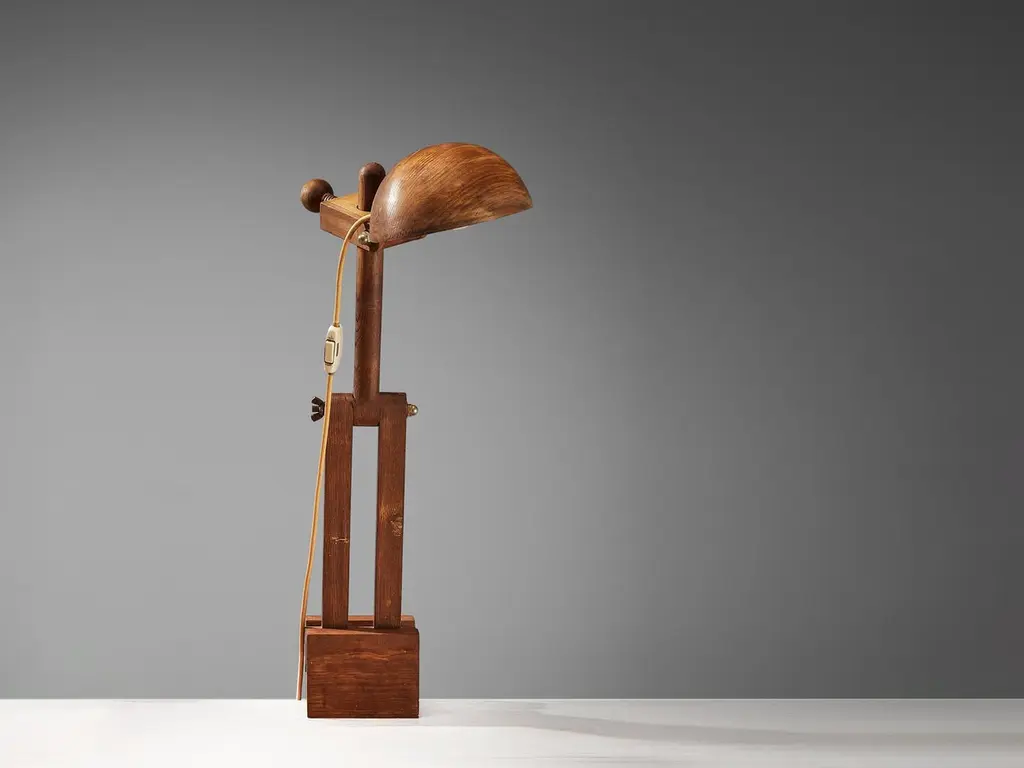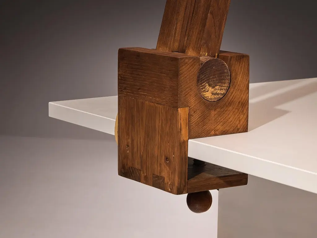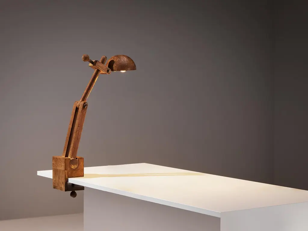 Paolo Pallucco Playful Table Clamp Lamp In Solid Chestnut