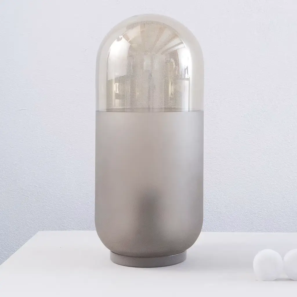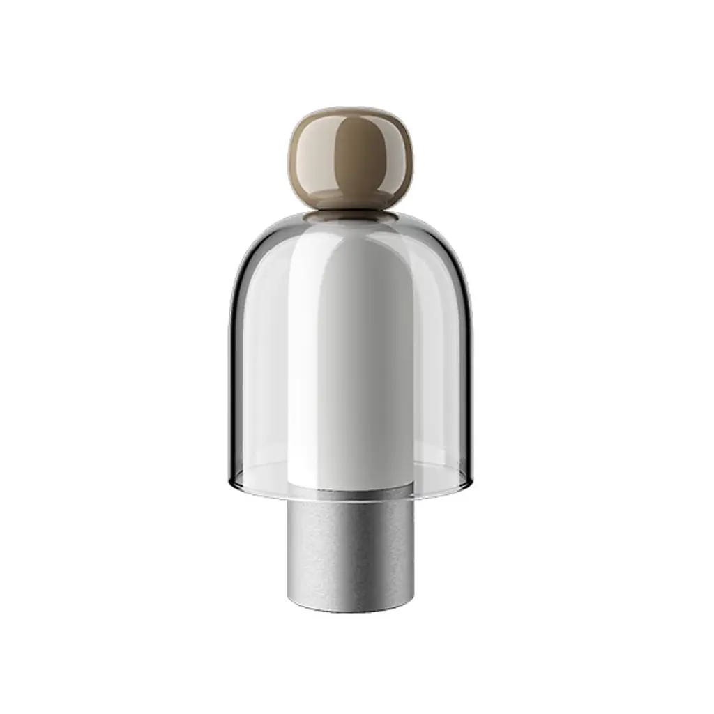This elegant table lamp is part of the Papalina collection, featuring pieces of borosilicate glass that were mouth blown and crafted by hand. The bottom part of the piece was sanded and then colored with specific pigments to achieve a unique tinted, sophisticated effect. The transparent cable is 180 cm long and the bulb is a halogen E27 with a max of 40W. Either alone, in a study, living room, or entryway, or paired with the Papalina Ceiling Lamp, this piece is sure to make an elegant statement in a contemporary home.