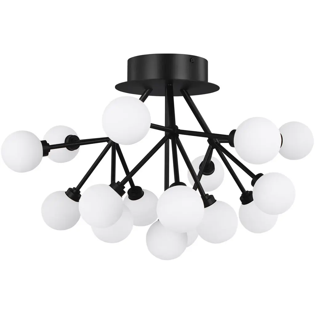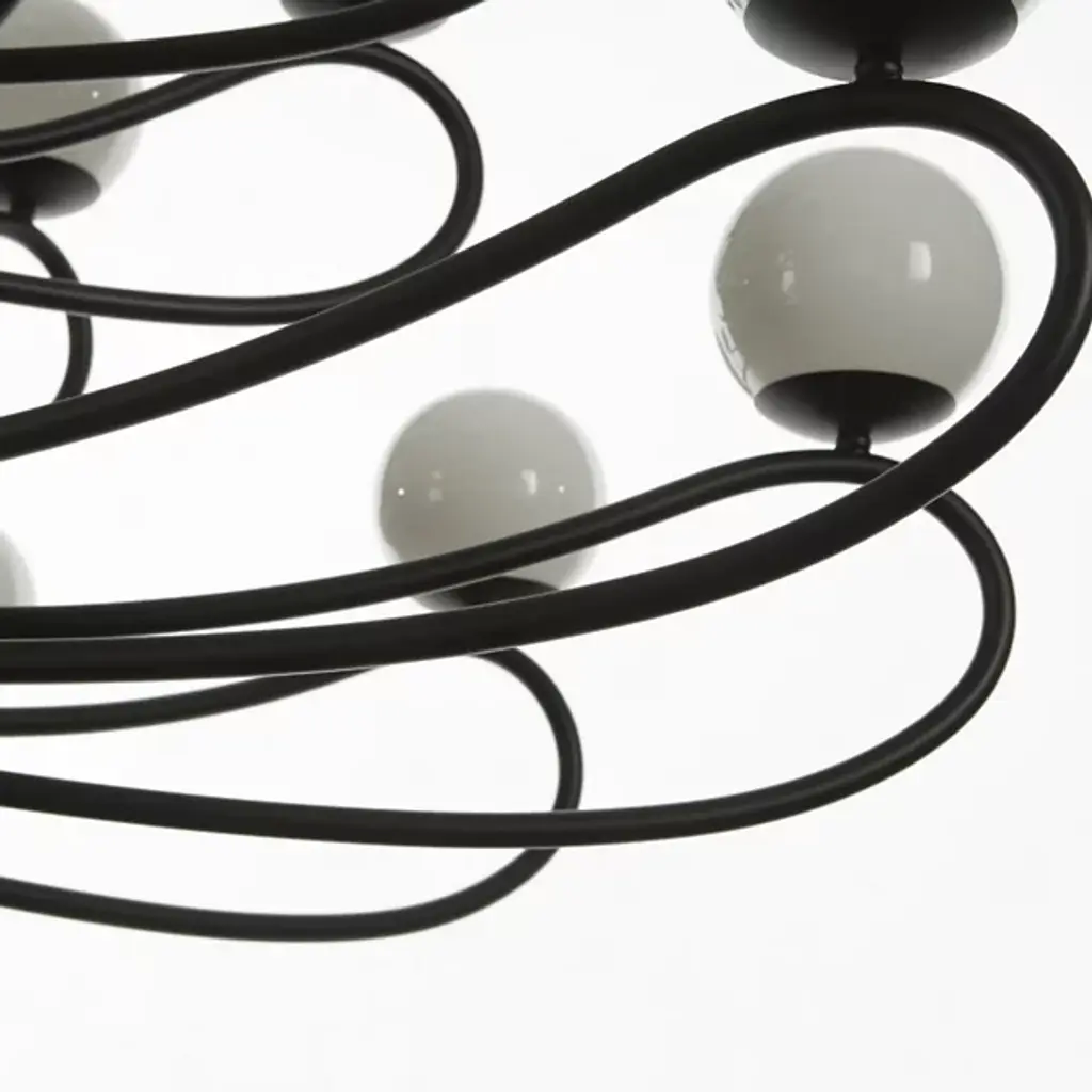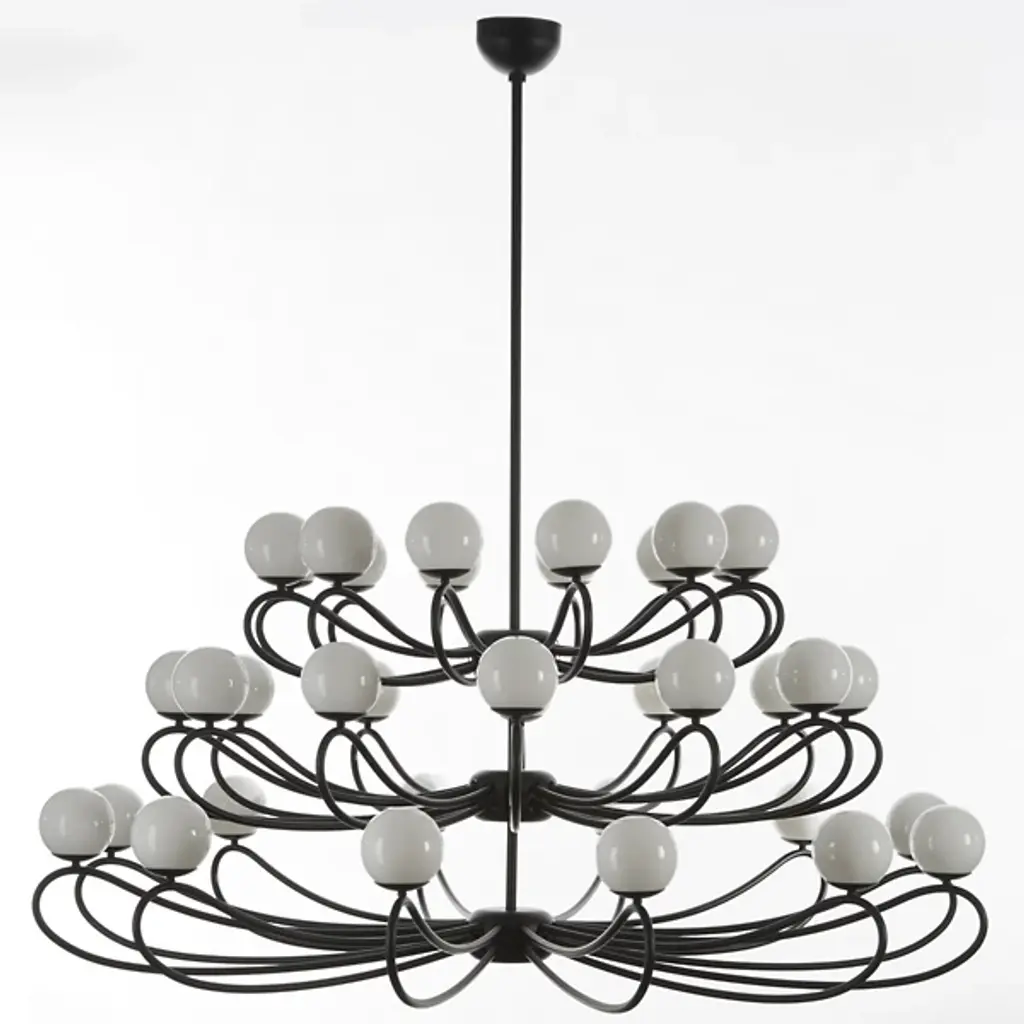 Express a modish retro-modern appeal to interiors with the Papillon 36-Light Chandelier from MM Lampadari. A Matteo Zorzenoni design with an airy, Italian elegance, each fixture is meticulously crafted to evoke the butterfly it is named for. It descends from a dome-shaped canopy and slim downrod that supports the fixture from above, securing three tiers of open, curving arms in robust metal that extend evenly outward. Strong lamping ascends from a dish-shaped housing set at the end of each upward-curving arm, mellowed by a glossy glass orb shade, creating clever contrasts with a classical, crafted character that focuses on small details.