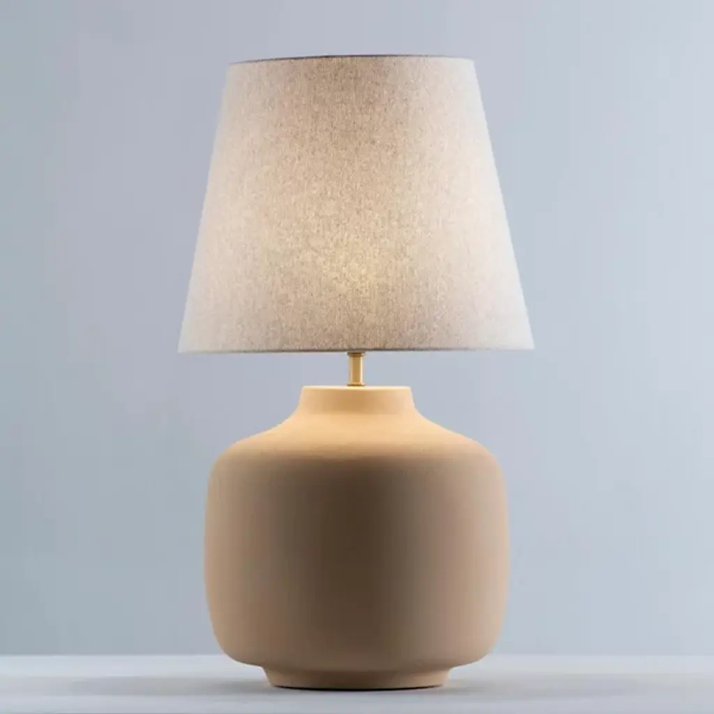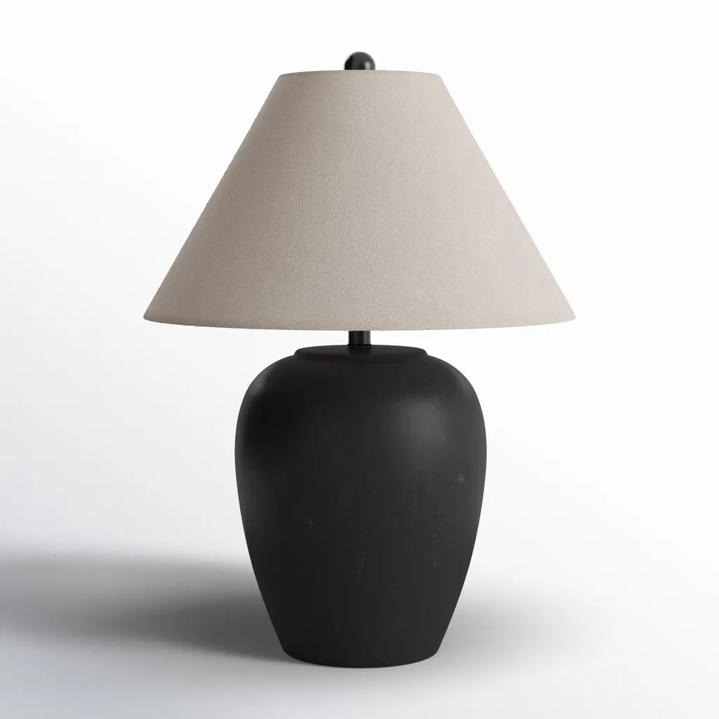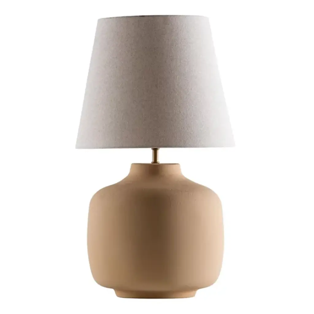 The Paraty Table Lamp from Geo Contemporary brings organic modernism to tabletop lighting. Its rounded base, indicative of a smooth river stone, provides a stable foundation and visual weight. The lamp's body transitions seamlessly into a slightly tapered neck crowned by a classic empire shade. The textured fabric shade softens the light, creating a cozy atmosphere perfect for bedside tables, living room end tables, or home office desks.