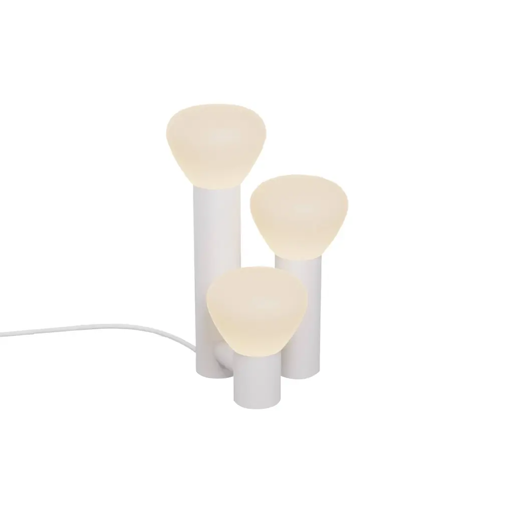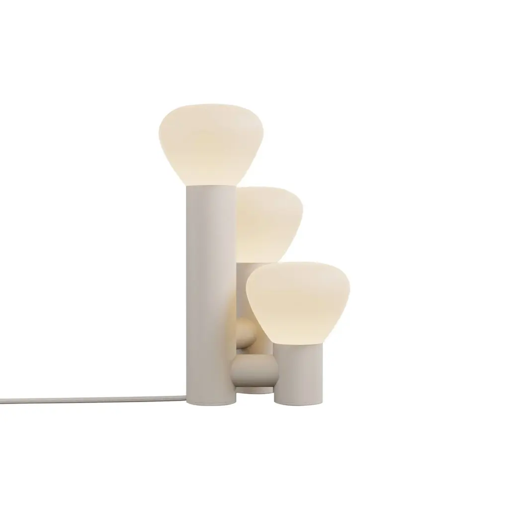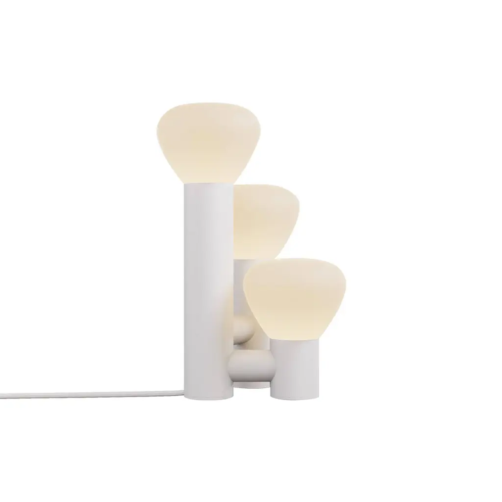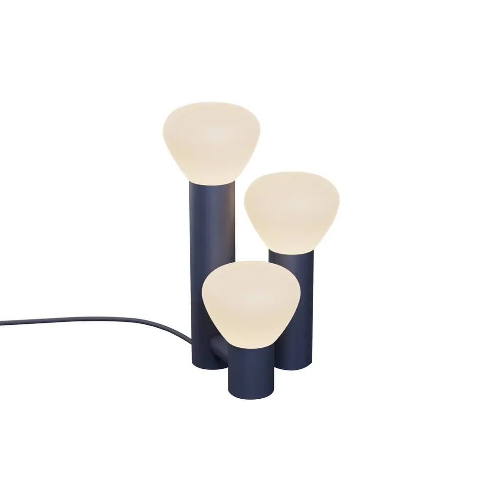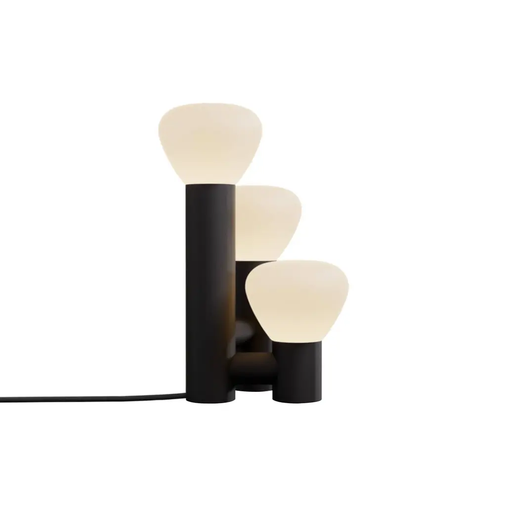 Tinkering with proportions, Swiss designer Adrien Rovero fashions Parc 06, a table lamp variation on her series inspired by a simple flashlight. Transformed into an arresting triple light, it features bulb shapes in handblown frosted glass, a sleek powder-coated aluminum structure. Adrien's collaboration with Lambert & Fils is entirely handmade at the brand's Montreal atelier.