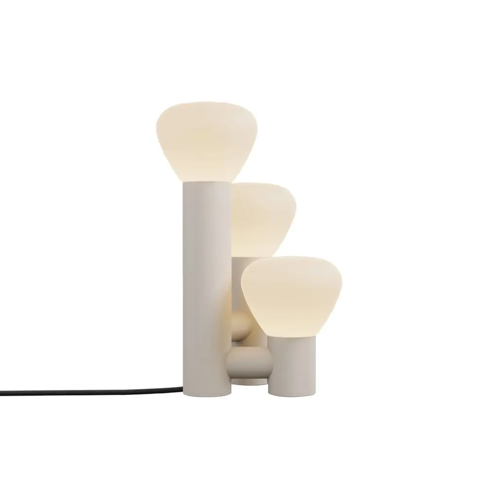 Tinkering with proportions, Swiss designer Adrien Rovero fashions Parc 06, a table lamp variation on her series inspired by a simple flashlight. Transformed into an arresting triple light, it features bulb shapes in handblown frosted glass, a sleek powder-coated aluminum structure. Adrien's collaboration with Lambert & Fils is entirely handmade at the brand's Montreal atelier.