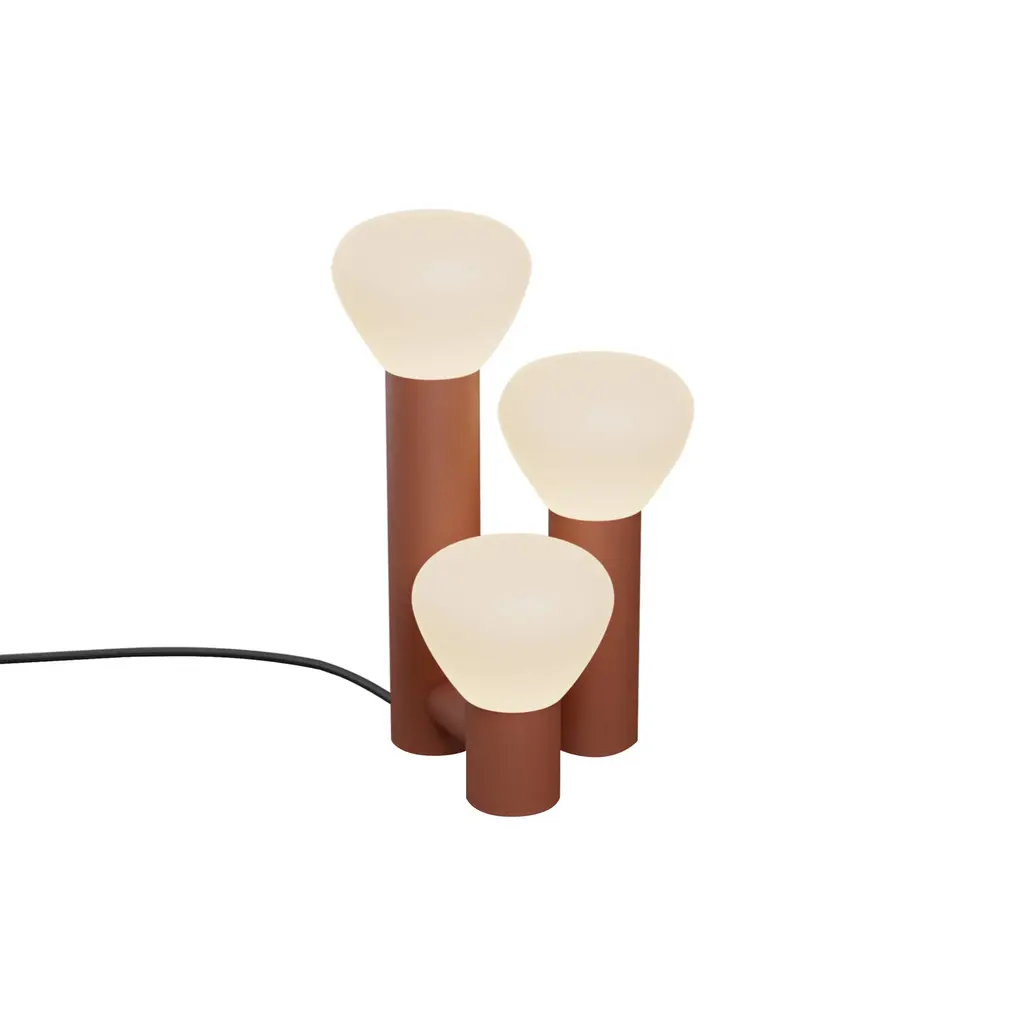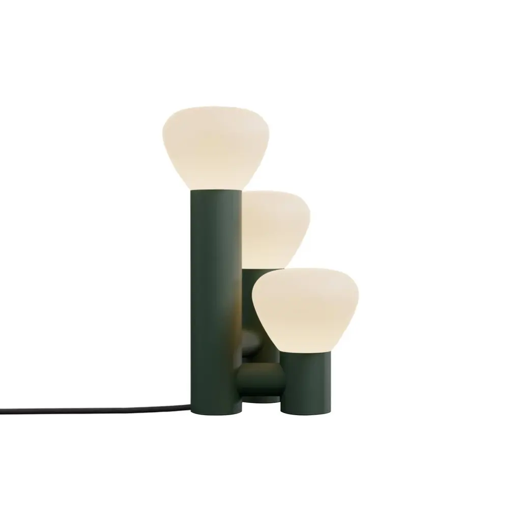 Tinkering with proportions, Swiss designer Adrien Rovero fashions Parc 06, a table lamp variation on her series inspired by a simple flashlight. Transformed into an arresting triple light, it features bulb shapes in handblown frosted glass, a sleek powder-coated aluminum structure. Adrien's collaboration with Lambert & Fils is entirely handmade at the brand's Montreal atelier.