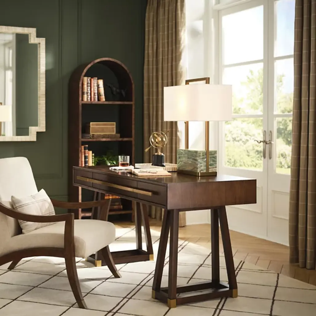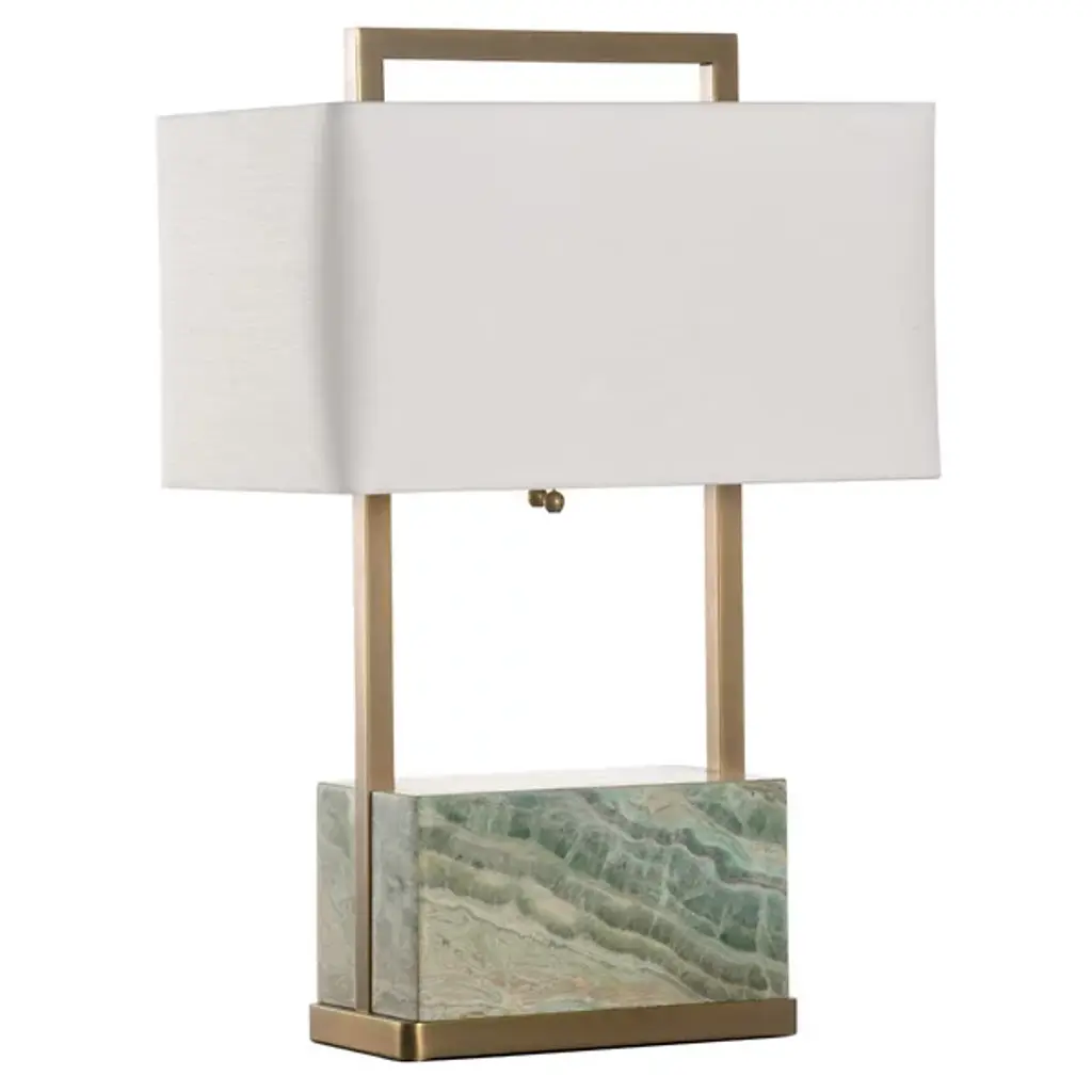 The Paris Table Lamp from Wildwood brings old-world craftsmanship to your tabletop with authentic Italian marble and metalwork. This substantial lamp offers dual-source lighting with practical pull chains for customized brightness. Its suspended linen shade diffuses light beautifully, whether placed on a side table, desk, or console. This desk lamp’s classical inspiration pairs with clean lines for a design that complements both traditional and current décor styles. It is an exceptional option when you need both ample illumination and sophisticated style in one piece.