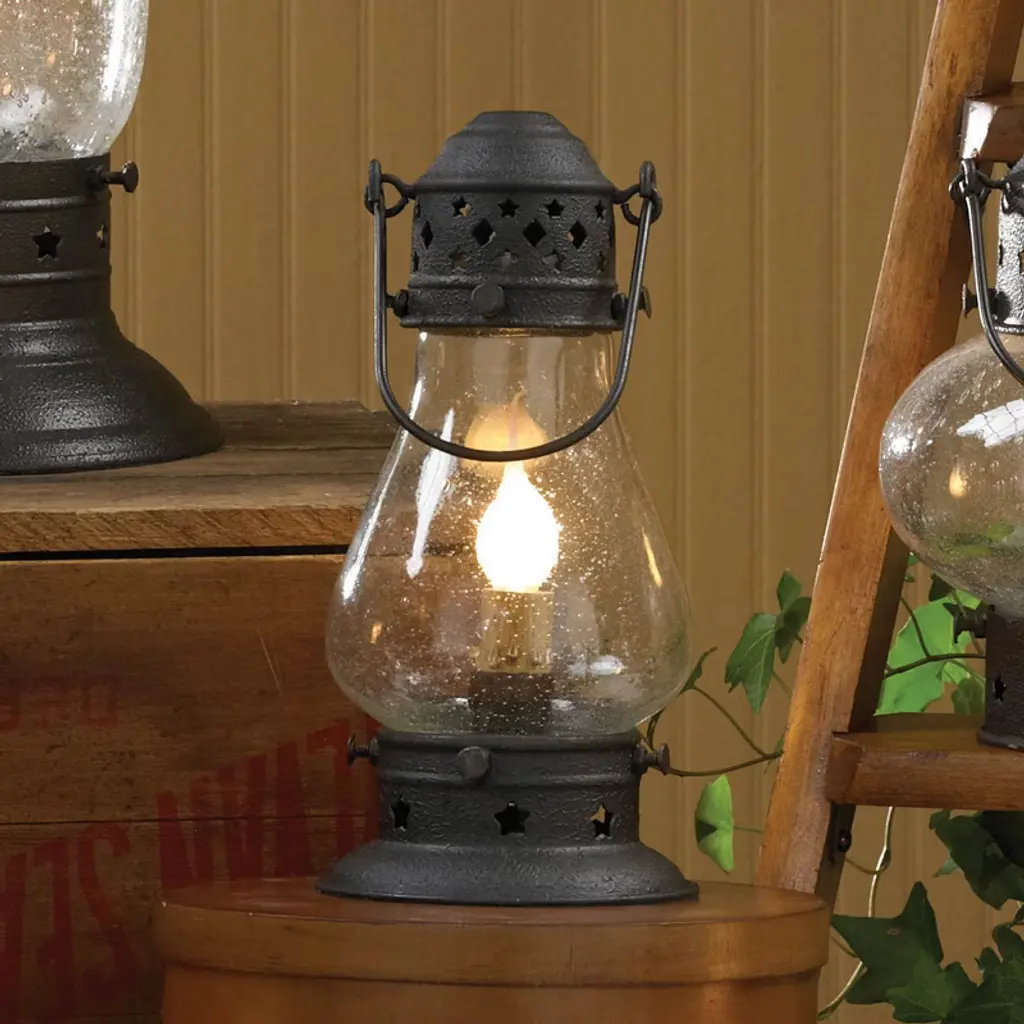 This original lamp design is hand crafted with unique style and charm and is a reproduction of an early whale-oil lamp. The sleeve features candle drip effect which provides a vintage and pretty detail. The glass globe is easily removed from the base to make changing the bulb quick and easy and handle is functioning so this lamp can be placed on a table or hung. The bulb is sold separately.