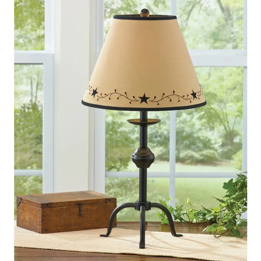 Brighten the room with a soft, warm glow delivered by this lovely table lamp. Classic and simple, this versatile iron lamp has three legs to provide a sturdy, stylish statement on the desired tabletop area. The smooth, black finish adds a modern touch that allows this accent piece to be used in a variety of interior styles. Recommended to pair this tabletop light with a 12" lampshade and 60 Watt bulb for full effect, both not included.