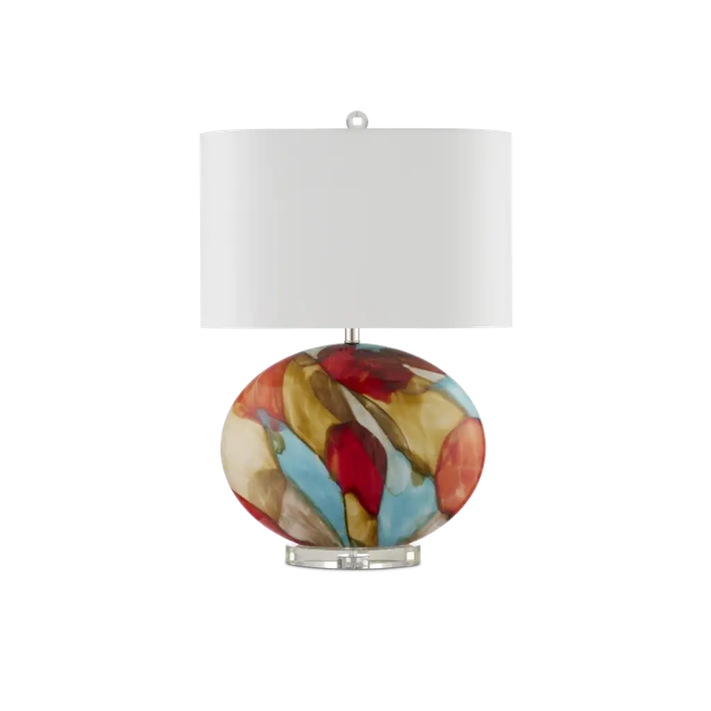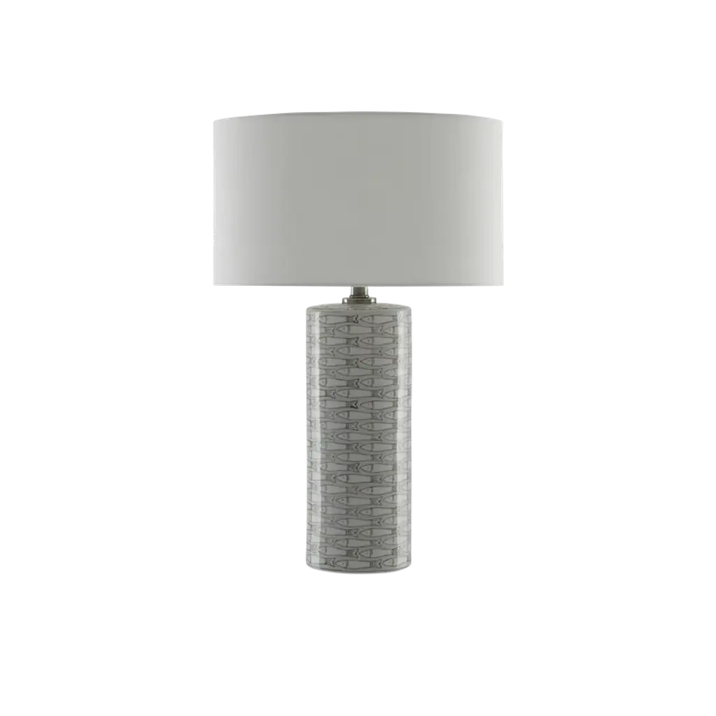 A lively botanical motif defines this ceramic table lamp from kate spade new york, which coordinates beautifully with its neutral glaze and rolled linen shade.
