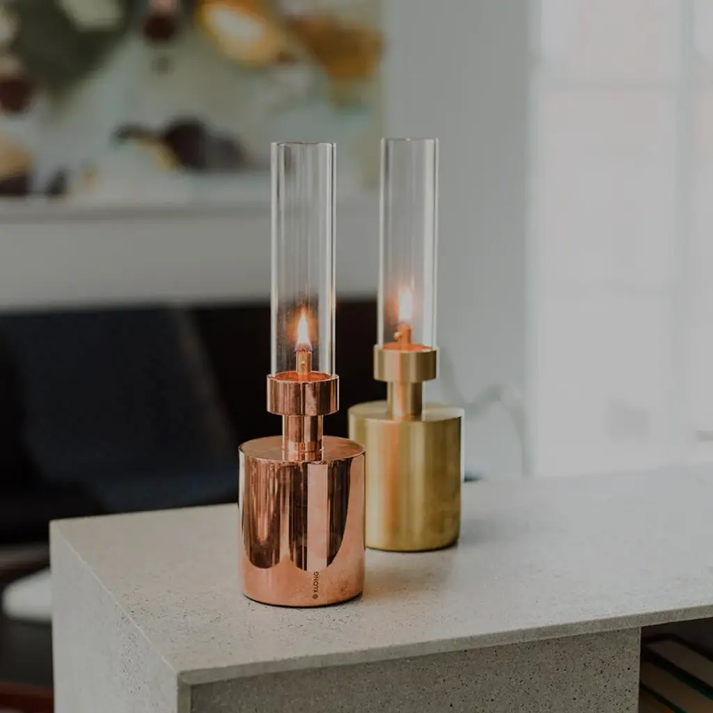 Klong’s Patina is a collection of traditional oil lamps with a simple, contemporary design. The lamps, designed by Mats Broberg and Johan Ridderstråle, are available with a powder coated finish and a copper or brass surface, and over time and in use the latter one will acquire a charming patina. The big and small oil lamps feature a high-quality French burner, and the mini lamp’s wick is made of fiberglass. The Patina oil lamps bring back the old times with a delightful, modern twist.