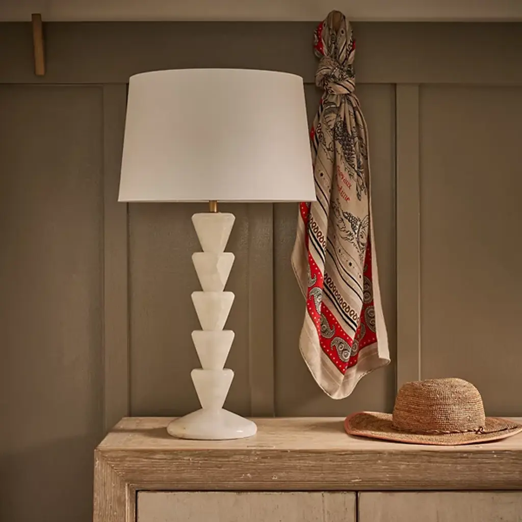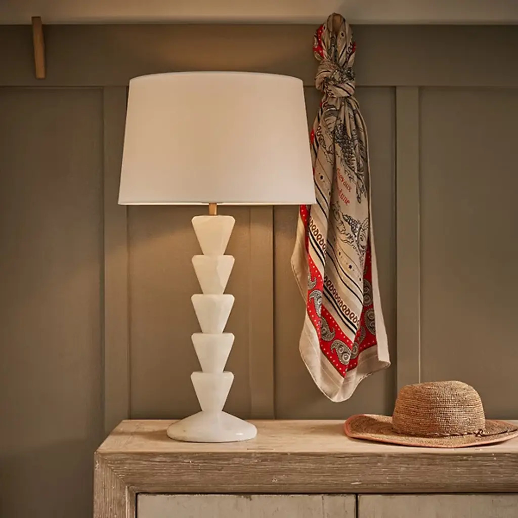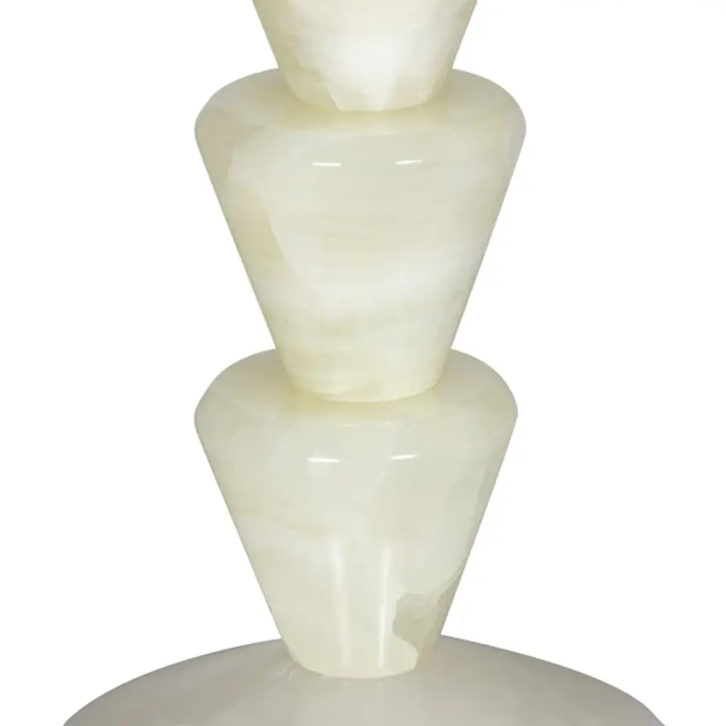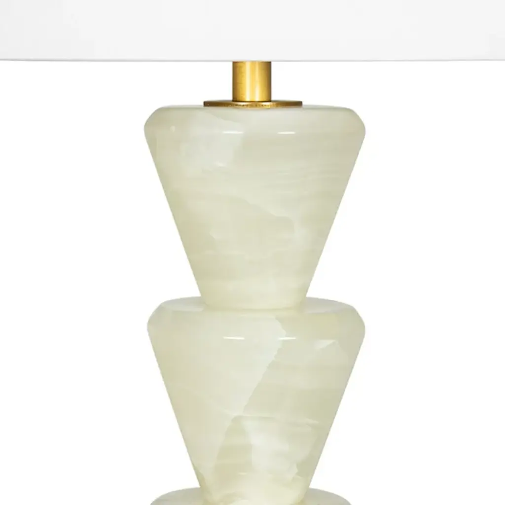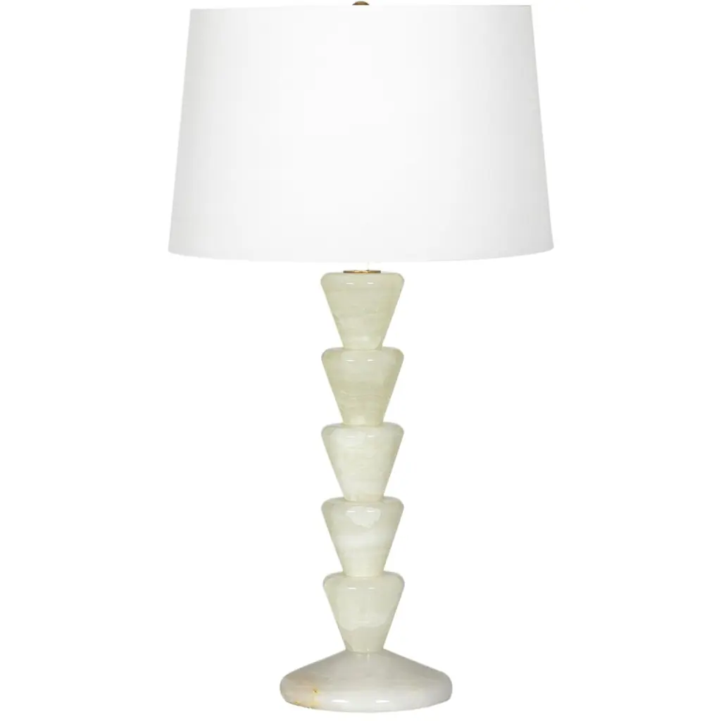 The Patricia Table Lamp from Regina Andrew is a stunning fusion of elegance and artistry. Handcrafted from natural jade stone, its distinctive base showcases tapered, downward-facing cone shapes that flow gracefully into a sturdy foundation. This sculptural design adds a refined, sophisticated touch, making it a captivating focal point in any space. Both stylish and durable, this table lamp effortlessly enhances living rooms, bedrooms, or offices with its timeless beauty and unique craftsmanship.