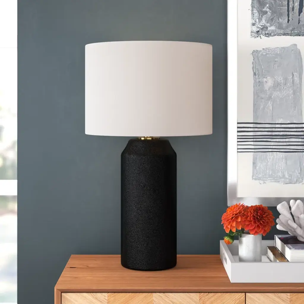 Introduce a rustic, traditional charm to your living space with the accent table lamp. Made from ceramic and crowned with a linen shade on the outside and polyester on the inside, this lamp creates a warm, inviting glow perfect for cozy evenings. The metal finial adds an extra touch of elegance to its overall look. Standing at 30 inches tall, it's sure to be a striking addition to any room. Plus, maintenance is a breeze - just wipe it clean with a dry cloth to keep it looking brand new!