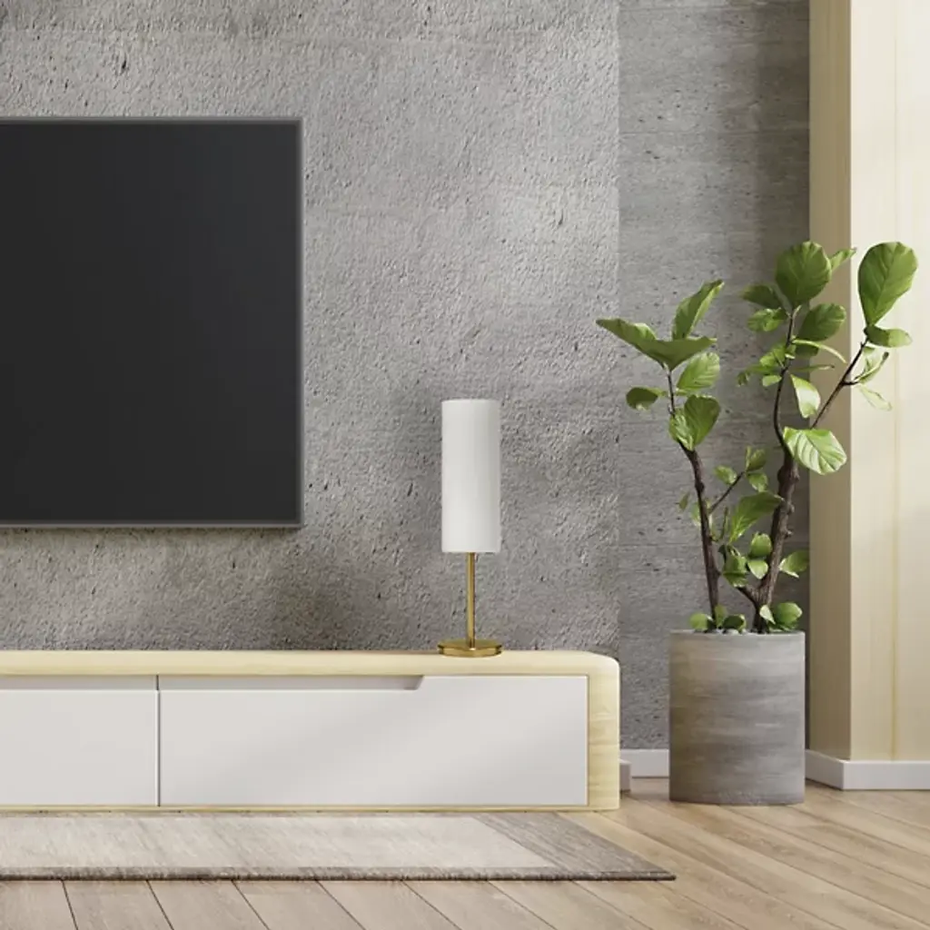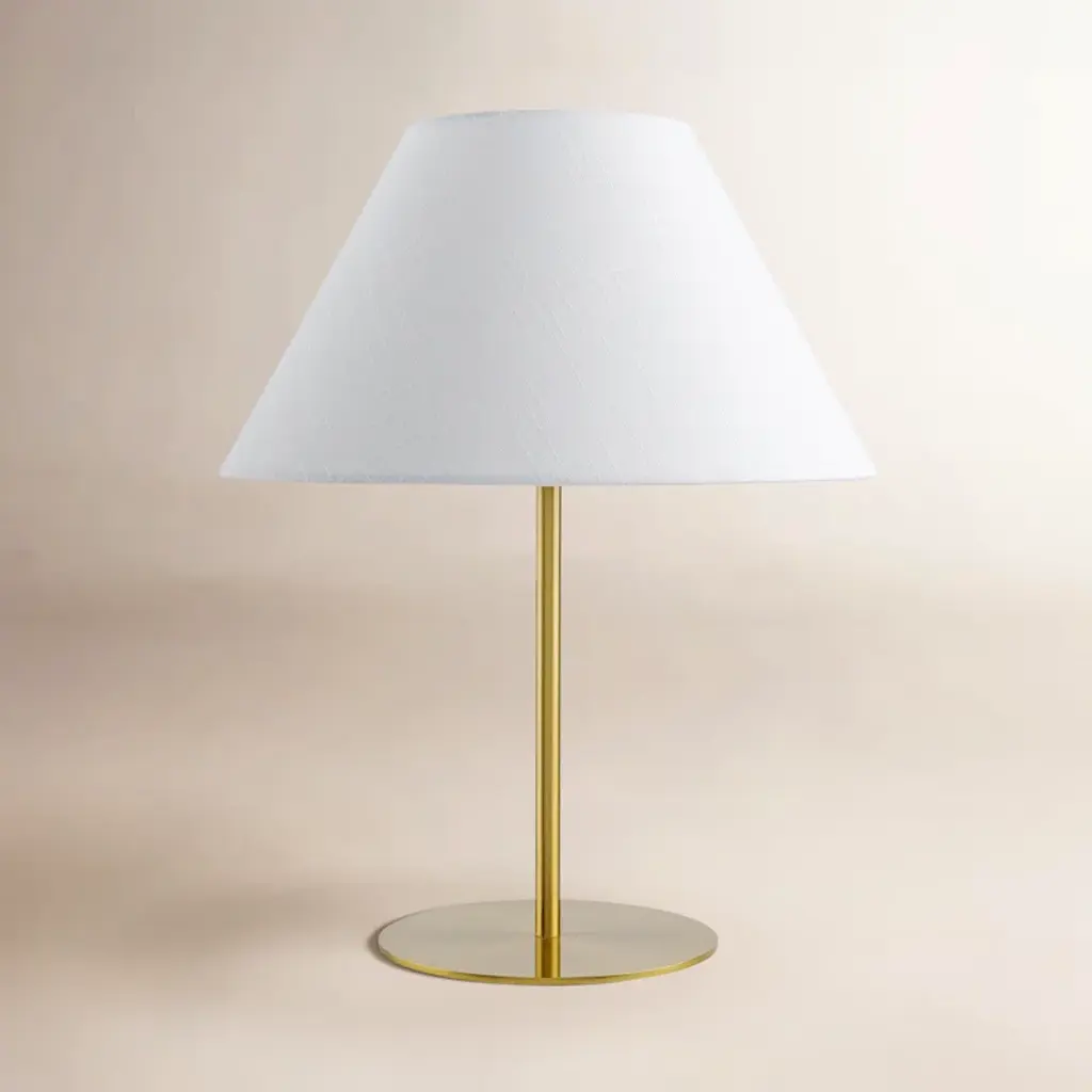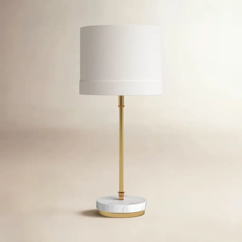 A petite table lamp designed to produce big light. The Paza Table Lamp by Dainolite features a cylindrical glass shade atop a similarly slender metal stem and base. In addition to having a generally clean profile, the shade evenly diffuses the light produced by the bulb housed within all around a bedroom, living room or workspace. With its small footprint, this table lamp can fit easily on side tables or desktops small or large.