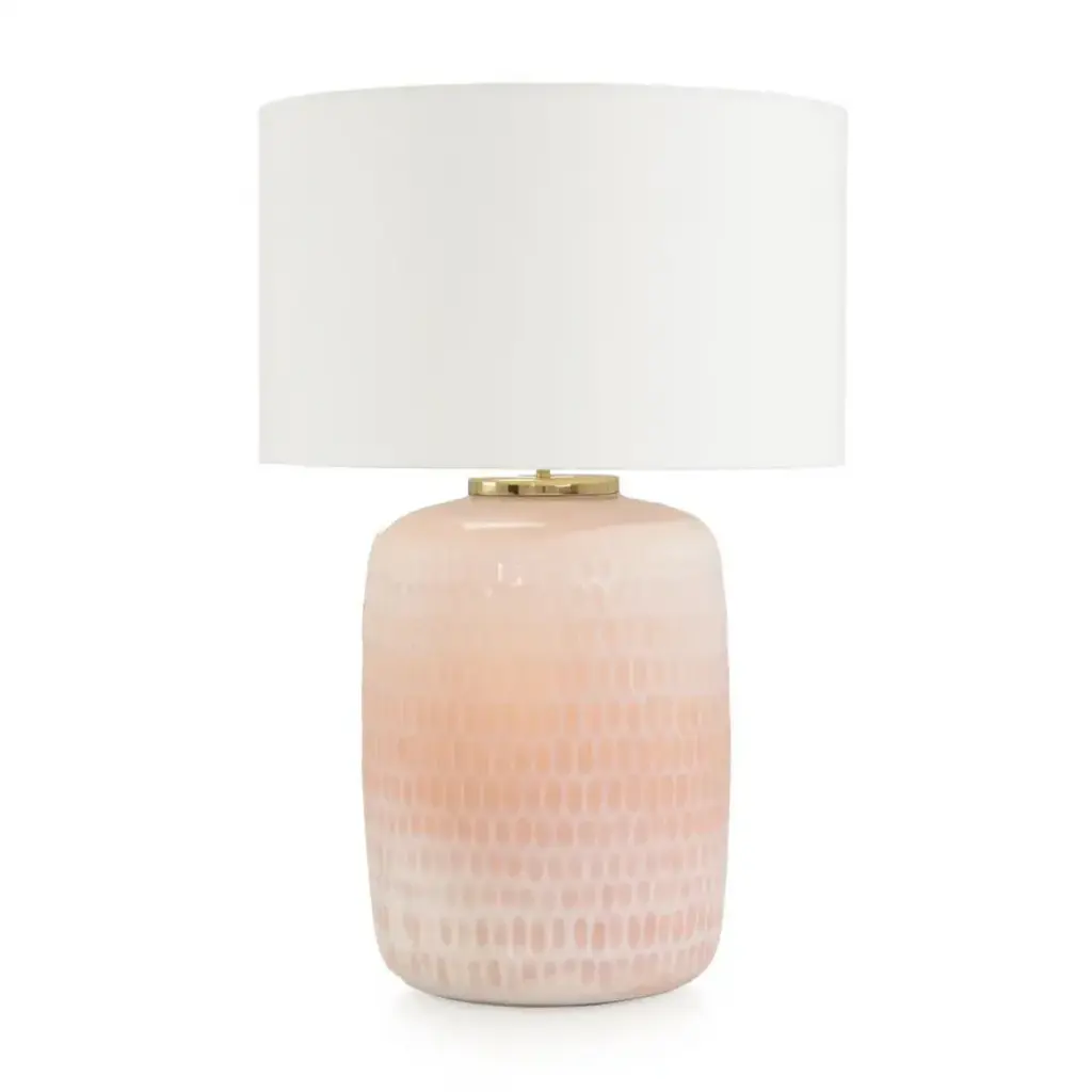 A stunning blend of natural elements and contemporary design, the Peach Honeycomb Table Lamp features a robust, yet seductive profile that is elevated by a gorgeous color palette. A rounded body of mouth-blown glass features a peach color overlain with an organic honeycomb pattern, imbuing the piece with a wealth of texture and visual interest. Brass hardware present in the neck and finial, beautifully juxtaposing the natural motif with sleek metallic sheen.
