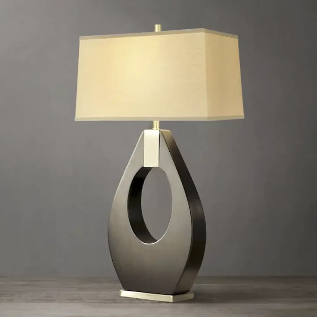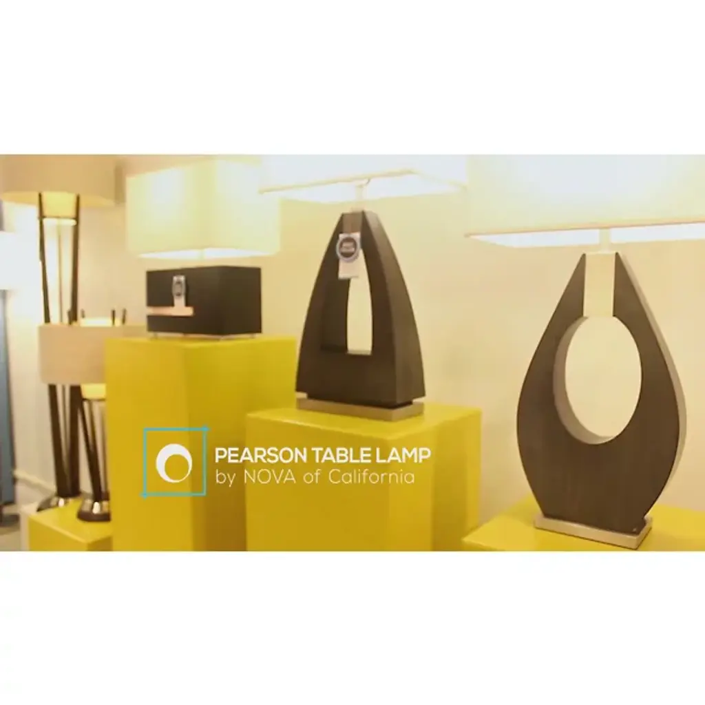 Functional art with a chic tone. Accompany your sofa or bed with the sculpted soothing silhouette of the Pearson Table Lamp from Nova of California. The piece takes a page from modern sculpture, seducing with a helping of shapes and lines. Popping with steel hardware, the MDF body presents a curve-wrapped silhouette that’s unmissable at any time of day. The rectangular linen shade on top gives the piece an enduring quality and comfortable illumination. Light mellows through the shade, introducing an intimate ambient light into the room.