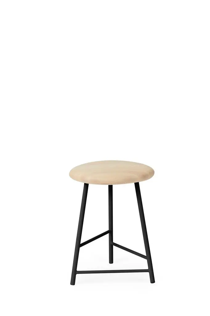 Pebble Bar Stool Small Oiled Ash Black Noir by Warm NordicDimensions: D 38 x H 65 cmMaterial: Oiled solid ash, Smoked solid oak, Black noir powder coated steel, Pure white powder coated steel.Weight: 7 kgAlso available in different colours and finishes. Please contact us.Light stools and bar stools with organically shaped seats made of solid wood and with a strong attention to detail. With its well-conceived shape and wonderful finish, Pebble's seat beckons you to touch it and is testament to a proud Scandinavian tradition of top-quality craftsmanship. Pebble comes in three heights so that they can be used for both a quick cup of coffee by the kitchen table, drinks and snacks by the bar and extra seating by the dining table. The design of the Pebble stool and bar stool is inspired by pebbles found on the beach, which even after centuries of grinding by the ocean are still not quite round. In the same way, the seats on Pebble are slightly asymmetrical and organic, which releases the beauty of the wood. Choose between three heights, metal frames in several classic colours and exclusive types of wood with exquisite finish.Warm Nordic is an ambitious design brand anchored in Nordic design history and with a timeless, aesthetic style that inspires you to appreciate the little things in life. The company is the result of several years’ intense work on developing a new design brand with design history, quality and personality at its core. Warm Nordic boasts a colourful and charming universe of furniture, lamps and accessories full of personality. Our designs encapsulate the Nordic spirit, which in its essence is timeless, inclusive and warm.