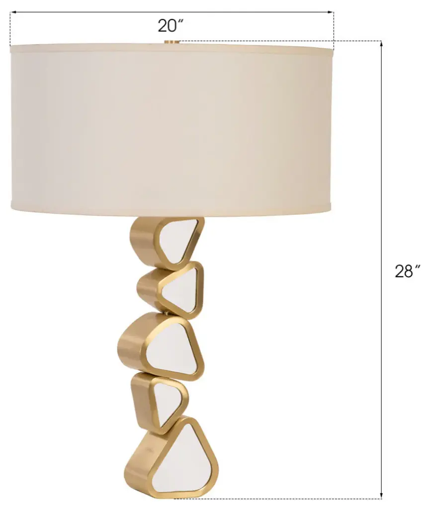 Pebble-shaped mirrors encased in a brushed brass finish are stacked into table lamps, floor lamps and mirrors to create this beautiful new collection.Lighting Information:-Bulb type: E26 Bulb wattage: 40 Watt/Max 100Number of bulbs: 1Bulb not included