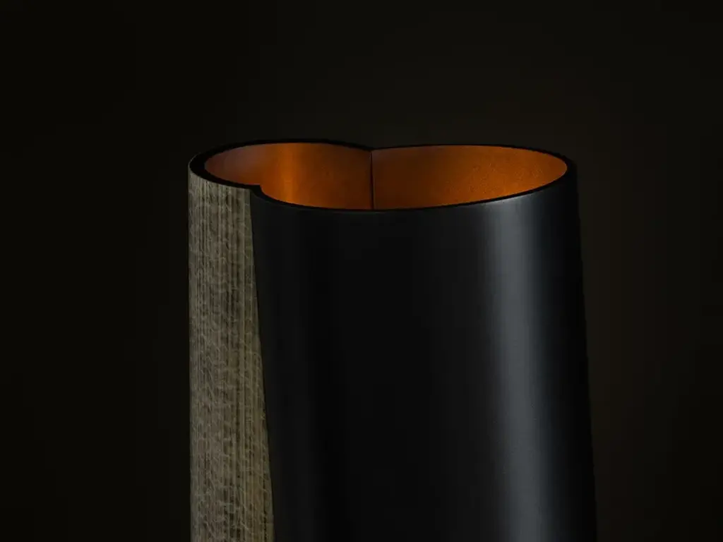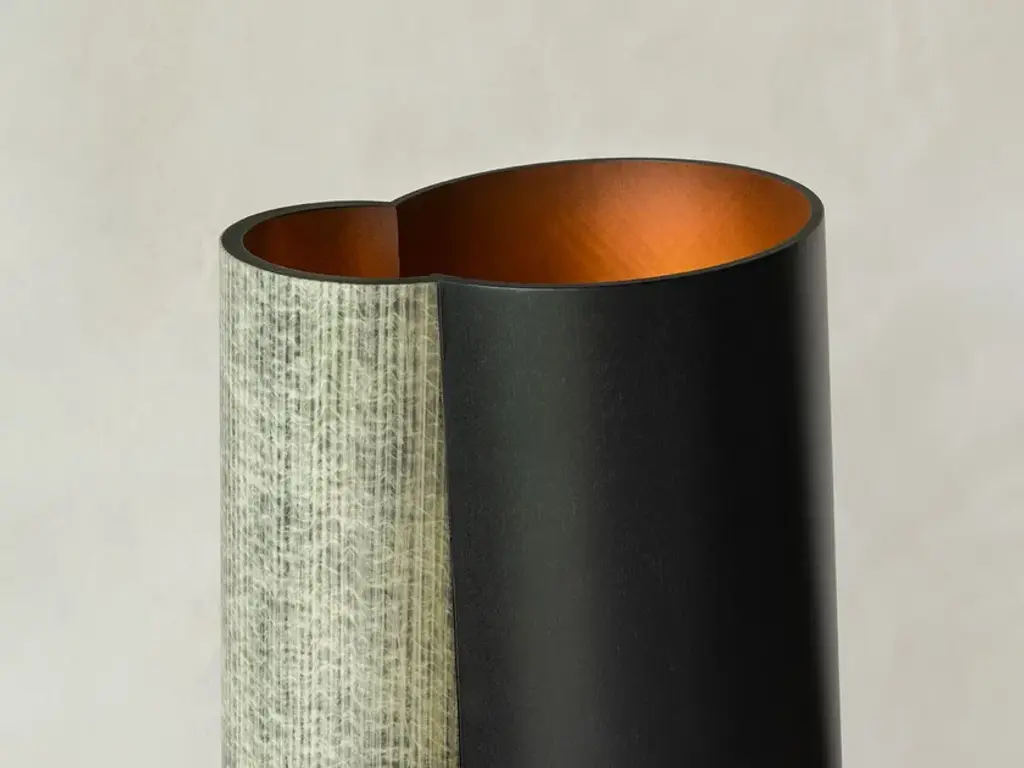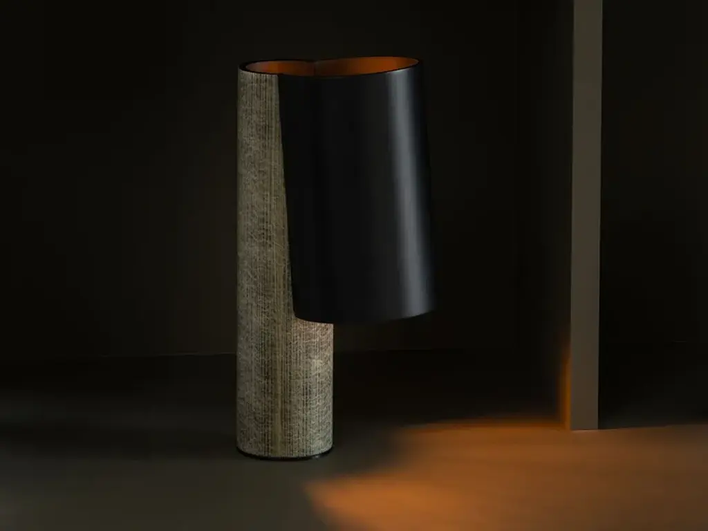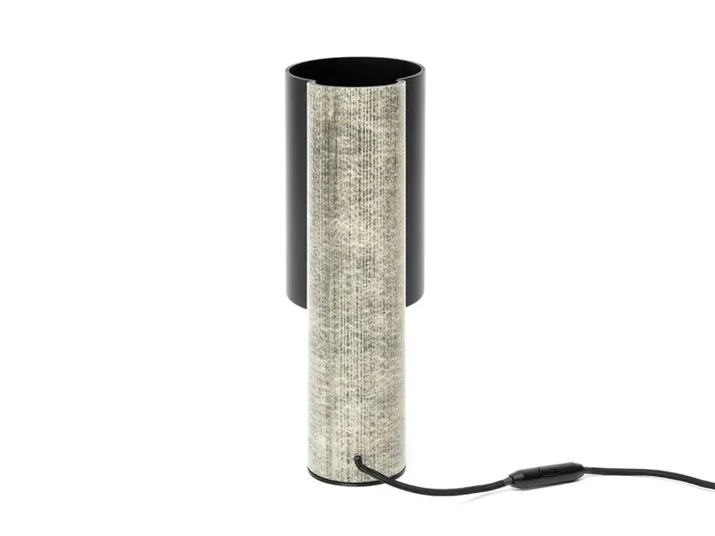Our PEEL lamp combines two aspects of carbon fiber profiles to maximize contrastand a strong graphic identity. The satin black carbon frame of the lampshade isharmoniously combined with the base of this carbon lamp covered with a fiberglass veilexposed to ultraviolet radiation. This finish gives an animal aspect, snake skin and also a mineral appearance, soft green moss. The table lamp powers a bulb which diffuses the light source at the bottom and at the top.Arnauld Lapierre transforms Epsilon Composite carbon fiber scraps into modern, monochrome objects. Discover this eco-responsible collection and how upcycling makes perfect sense.