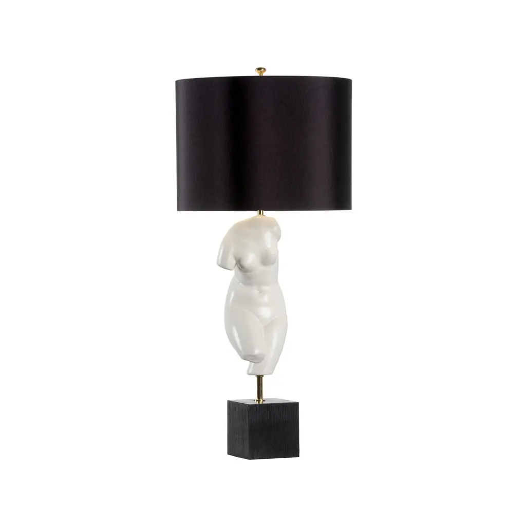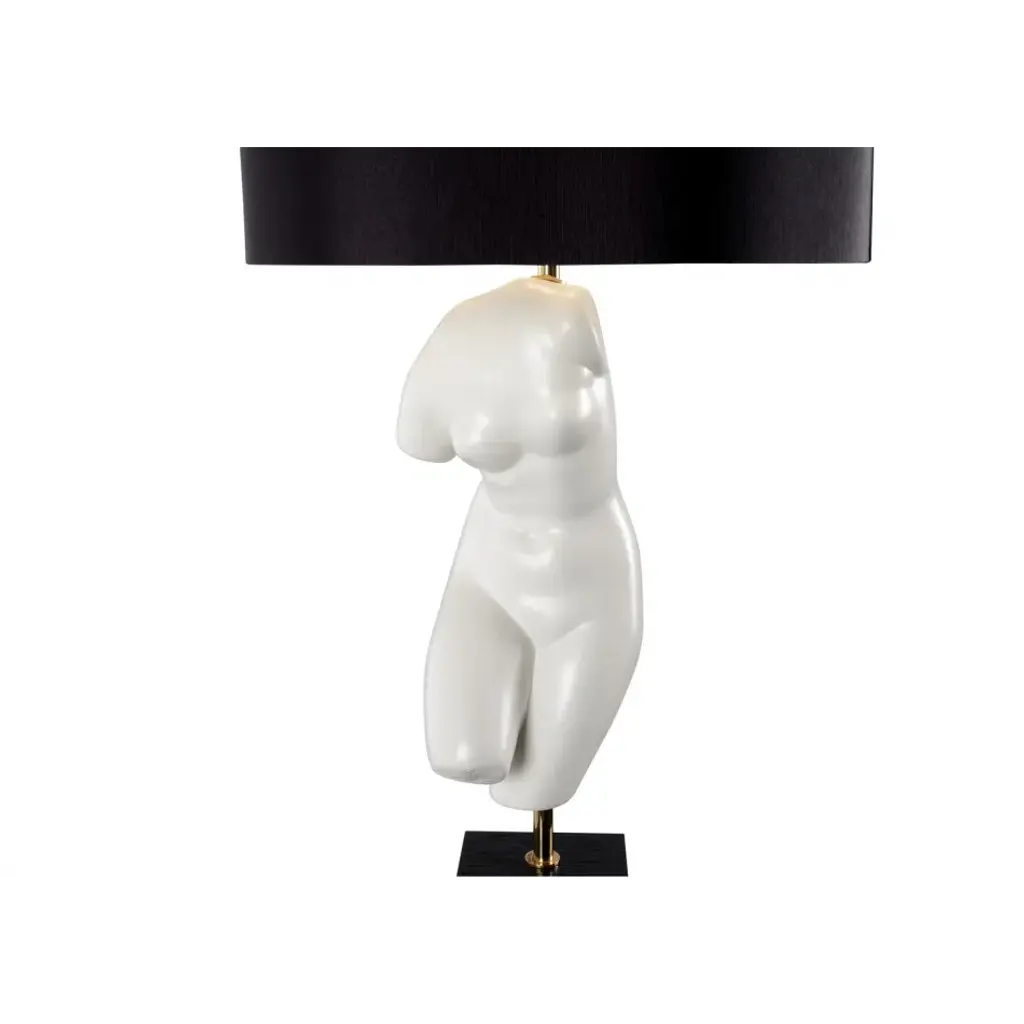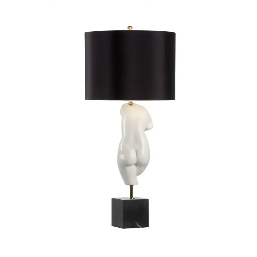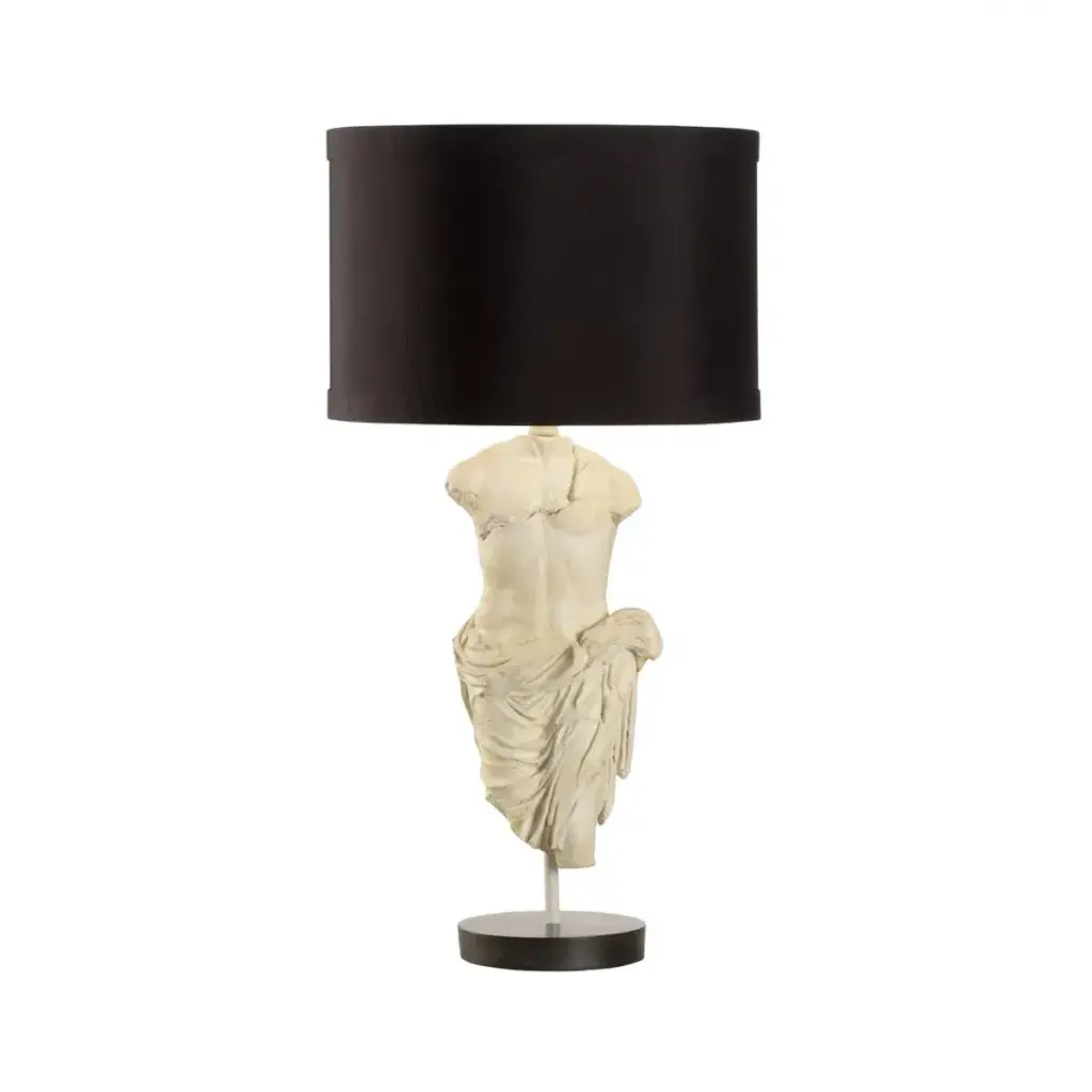 Peitho Was The Greek Goddess Of Persuasion And Seduction. Reminiscent Of Ancient Greek Art, This Italian Made Table Lamp Features A White Glazed Ceramic Torso Of A Women. A Black Drum Shade Tops The Design Creating A Gallery Worthy Light For Your Traditional Decor.