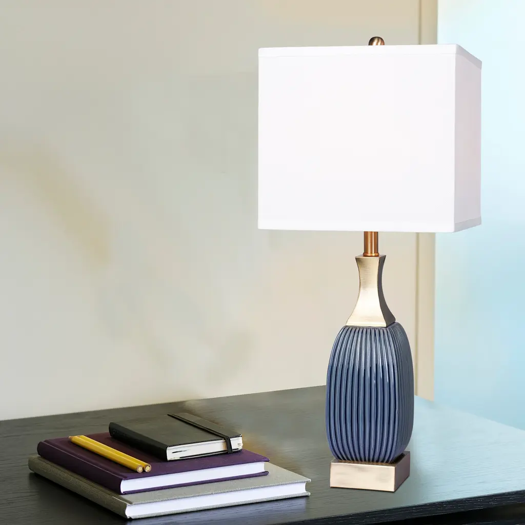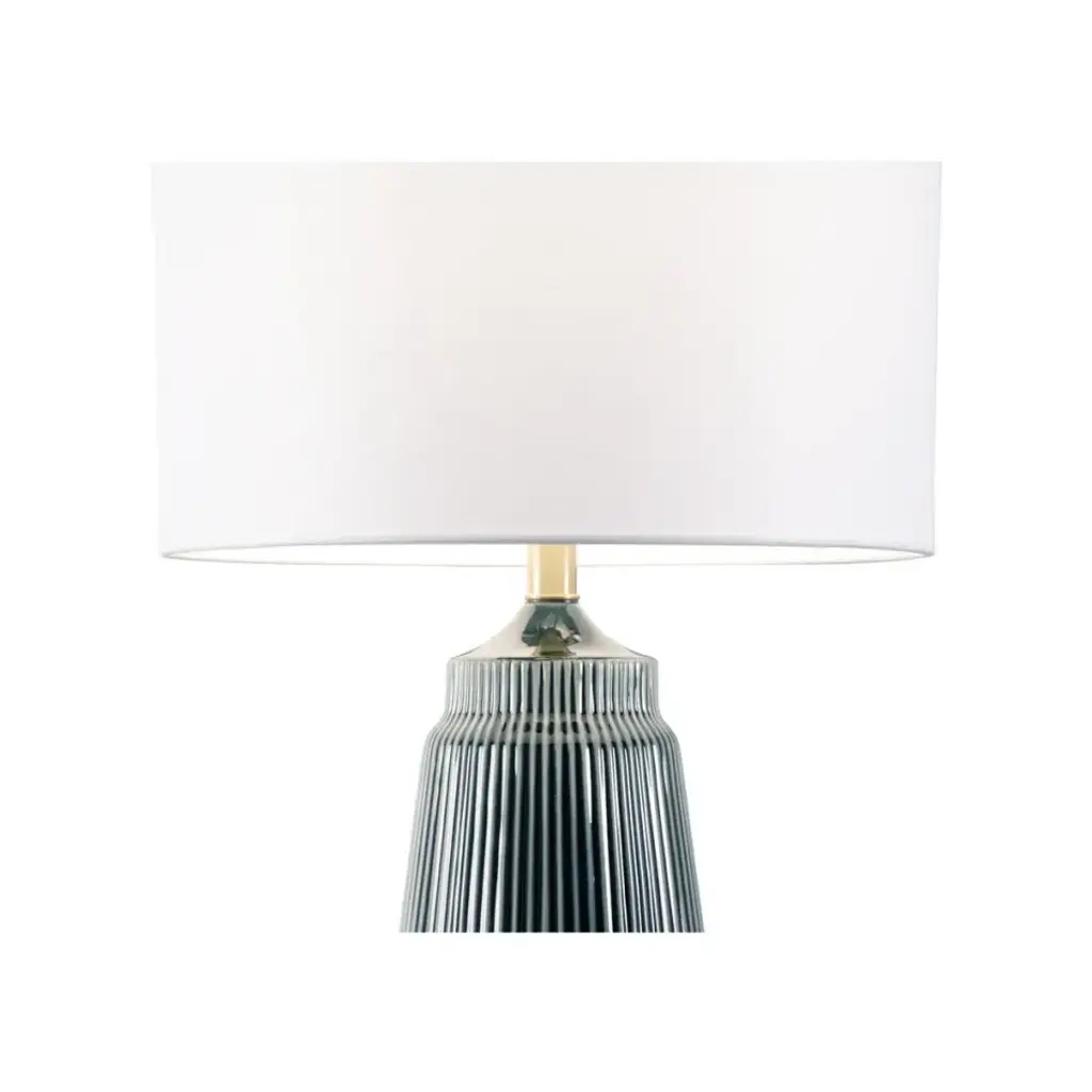 Brighten your home with this charming transitional table lamp. The Penelope Lamp features a deep teal glaze on ceramic with a gold base and parts. A classic white drum shade completes the look creating a glamorous pop of color perfect for a bedroom, entryway or living room.