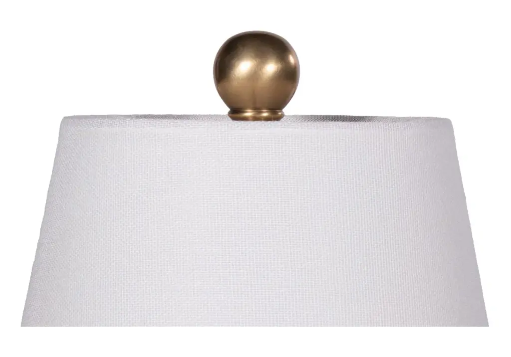This petite table lamp is made up of a solid alabaster body with brass hardware. An elongated, tapered linen shade elevates its sophisticated design. Style on a small table in a library, under kitchen cabinets, on a floating shelf, or pair with our Beatrice Brass Etegere .