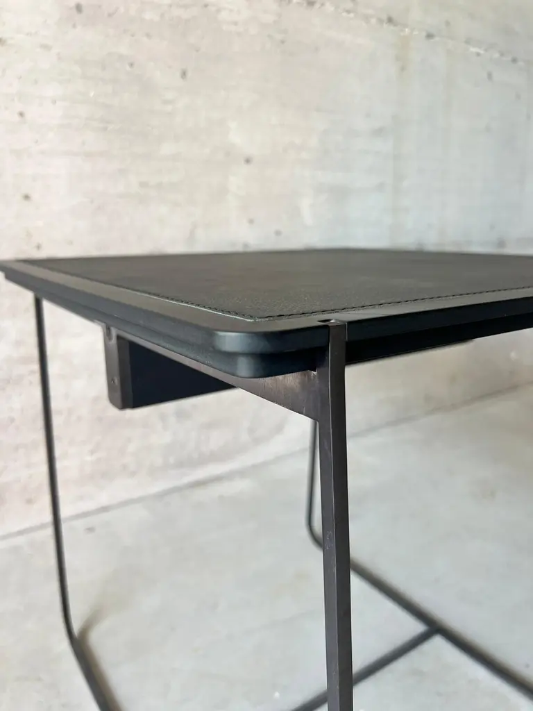 "Petit Cuvee" is a low square side table, designed by Stephane Lebrun and manufactured by Dessie', featuring a top in black MD walnut veneered or covered by black leather and a metallic base structure made of square section steel with an antique nickel finish.Indoor use only. Available in different options:Finish: •walnut•black MD + leatherDIMENSIONS:D. 19.6", W. 19.6", H. 19.6"Keeping alive the tradition of cabinet-making and adapting it to the contemporary aesthetic and functional needs in an economic field now ruled by industrial production is not an easy job. A lof of passion and great handcrafting skills are needed: it's something you can learn working in your family, just like what happened to Stephane Lebrun.STEPHANE LEBRUN was born in Belgium in 1973. His training in cabinet-making and architecture has enabled him to build himself the furniture pieces and projects he designs. This unique approach has opened the doors of prestigious places such as the Brussels Museum of Modern Art, the Manneken-Pis and the Belgium Museum of Embroidery.DESSIE' company's mission is putting a contemporary spin on the old tradition of cabinet-making, in order to offer pieces of furniture ready to get people excited and to satisfy aesthetic and functional values of the contemporary way of living. Dessie' was started during 1990s and now proposes a collection of pieces of furniture inviting to discover a sophisticated and elegant design, an unique style where different influences merge, and to re-create a simple and refined design atmosphere for unconventional people who are freely looking for essential and high quality pieces.A collection, including tables, small tables, writing desks, console tables, bedside tables, chairs, bookcases, dressers, cabinets, cupboards, upholstered pieces of furniture and lamps, which was created having in mind an essential style and a careful attention to recent trends. Harmony of forms and care for high quality and rational design, attentively studying any detail, are some of key features of production by Dessie', which has been always reworking the legacy from the tradition by means of a strongly contemporary design language.The aim is to create a forward-looking style which anyway doesn't lose the value of the past as a main feature, in order to give any setting an original charme, indifferent to passing fads. Hence here's a formal language which uninterruptedly takes care of details and precious finishes, while experimenting expressive capabilities of the best materials: precious woods, steel, leather, natural fibers, etc. Flexibility and possibility of customizing any piece in order to offer a "tailor-made" production is one of key design criteria followed by Dessie'.Dessie' established a close cooperation with some famous international designers, like the Catalan Jaime Tresserra, who designed "Tecnica" collection. Besides its own production, Dessie' has been taking the assignment of selecting products by some Spanish companies (Andreu World, Carpyen, Dae, Indecasa, Mobles 114, Punt Mobles and Tresserra) for many years, creating an unique and refined collection featuring bookcases, sofas, lamps, wall lights, chairs, armchairs, rugs, outdoor pieces of furniture, etc.