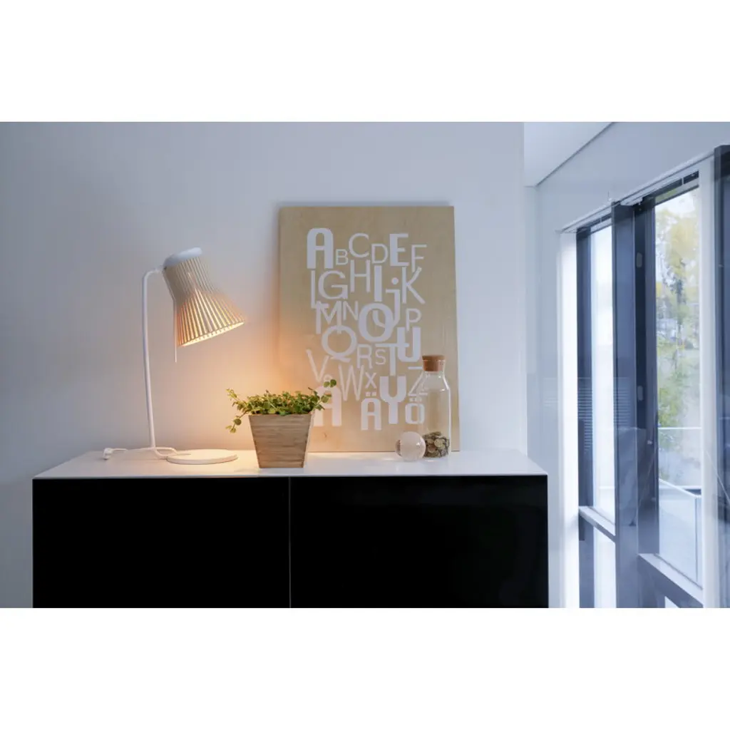 Secto Design’s Petite 4620 table lamp catches the eye with its slender stem and wooden shade that filters the light creating a soft ambience to any space. Secto Design luminaires are handmade in Finland from form-pressed Finnish birch. The lamps have clean Scandinavian silhouettes, and the wooden surface gives them a warm and appealing character. Secto lamps are designed by architect Seppo Koho who wanted to develop a softly filtering light that doesn’t dazzle but invites people to come closer. Secto lamps emphasize space and environment by creating a unique atmosphere and feeling of closeness.