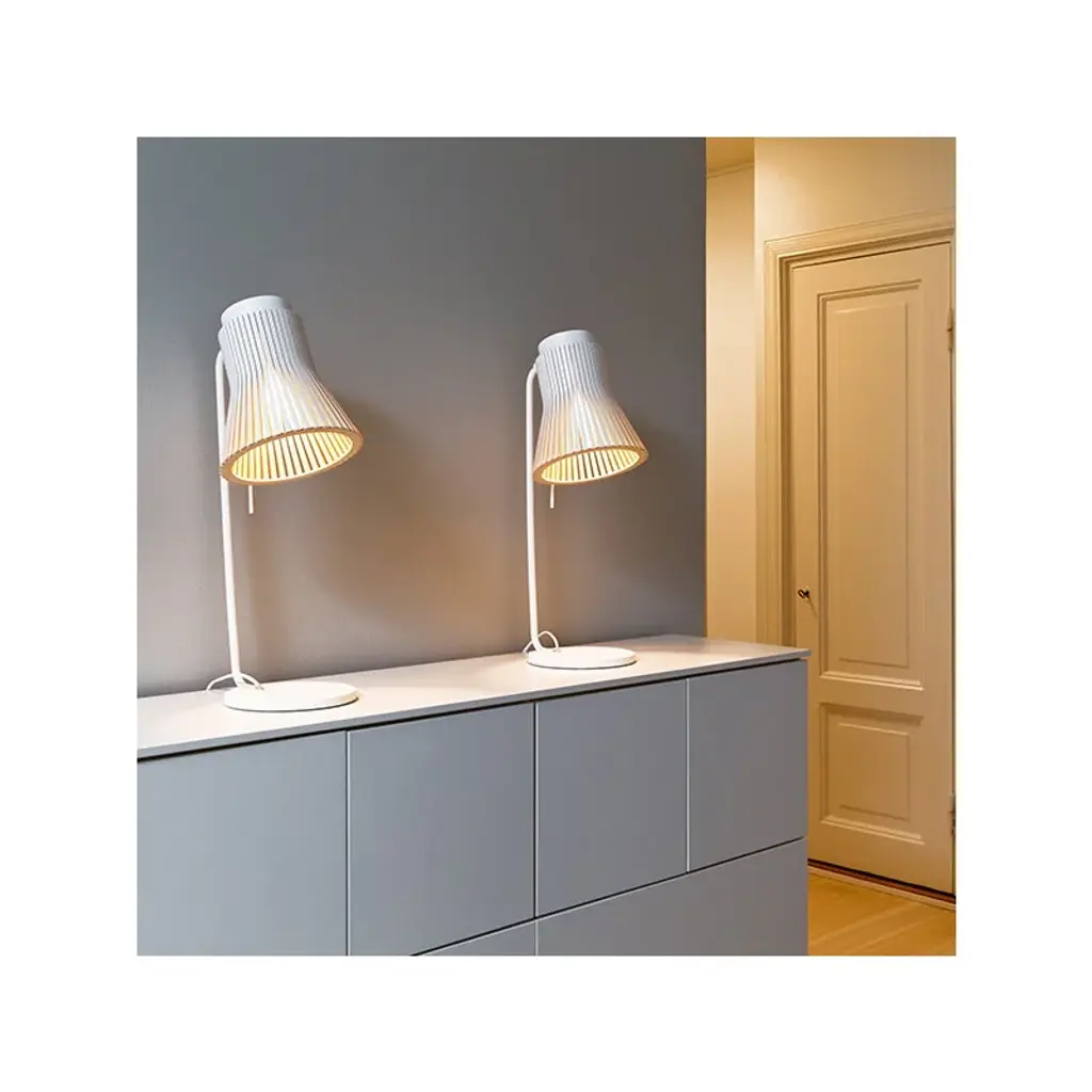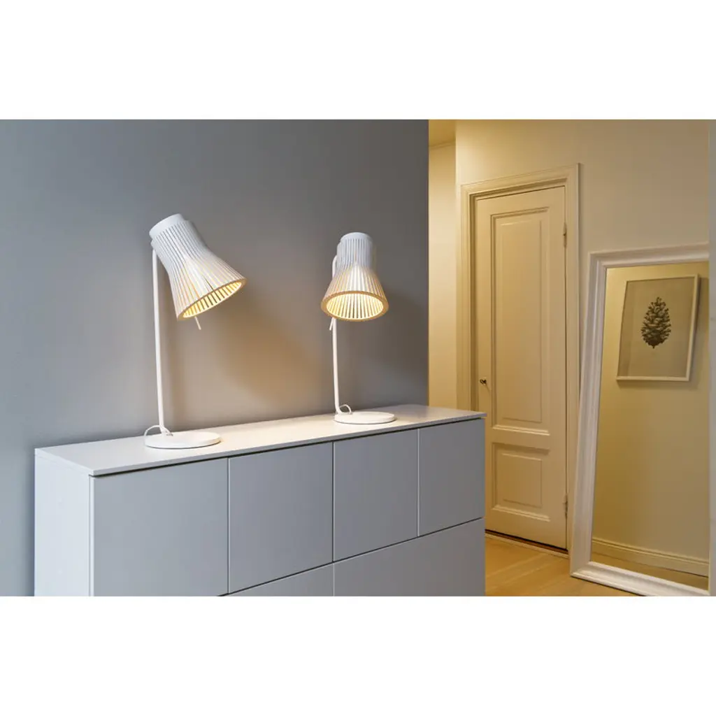 Secto Design’s Petite 4620 table lamp catches the eye with its slender stem and wooden shade that filters the light creating a soft ambience to any space. Secto Design luminaires are handmade in Finland from form-pressed Finnish birch. The lamps have clean Scandinavian silhouettes, and the wooden surface gives them a warm and appealing character. Secto lamps are designed by architect Seppo Koho who wanted to develop a softly filtering light that doesn’t dazzle but invites people to come closer. Secto lamps emphasize space and environment by creating a unique atmosphere and feeling of closeness.