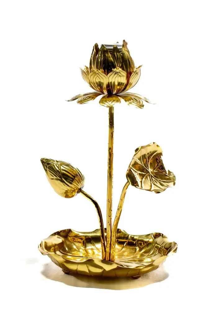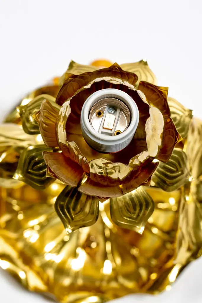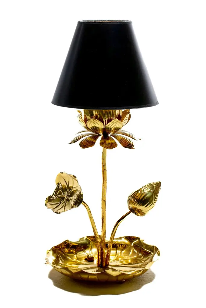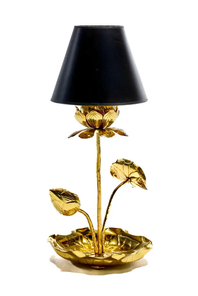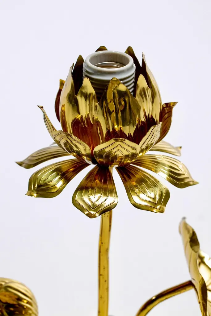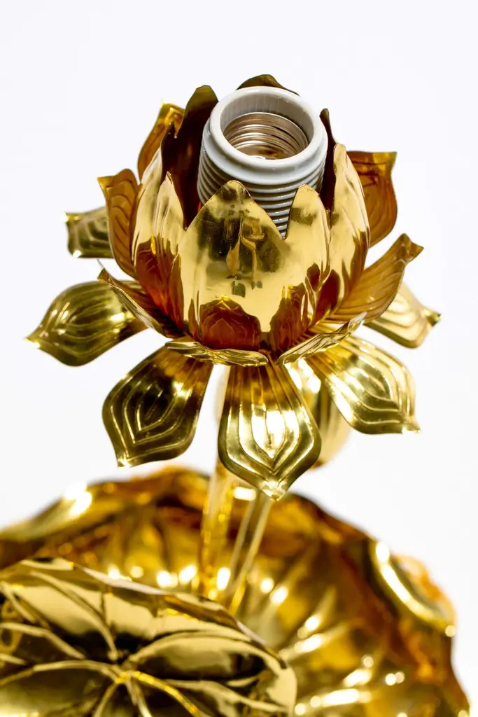 Petite Hollywood Regency Lotus Flower Lamp In Polished Brass By Feldman C. 1960