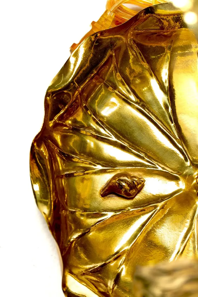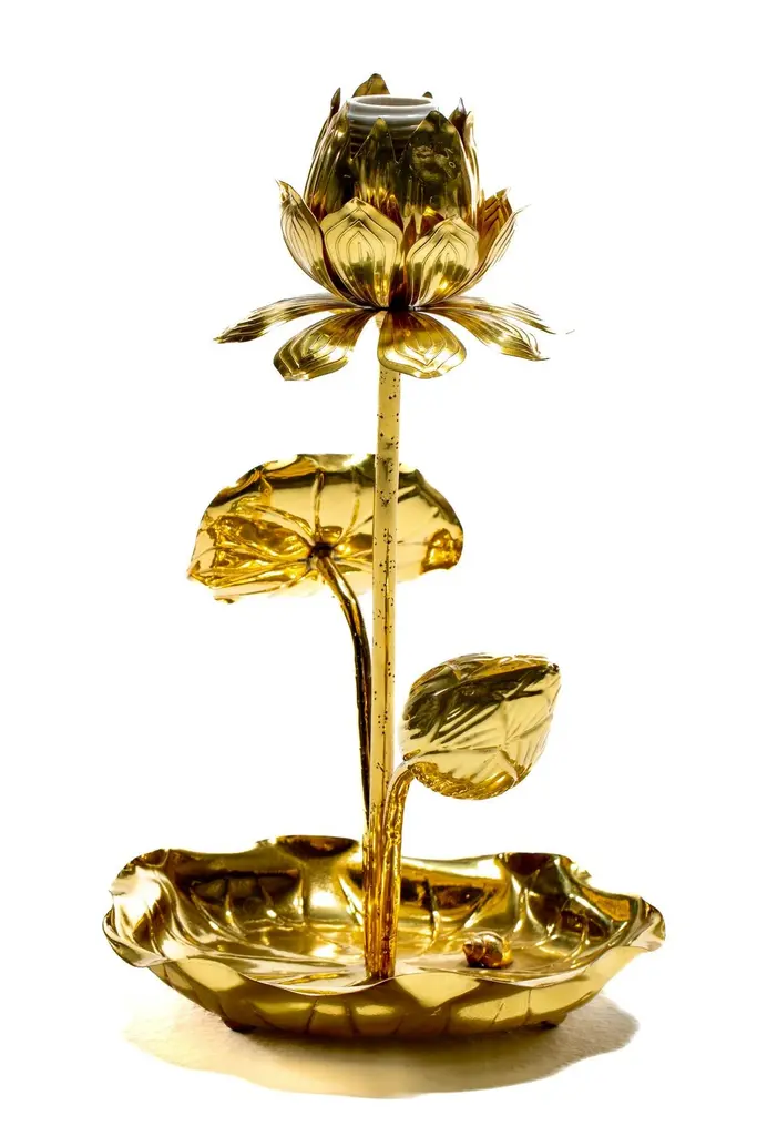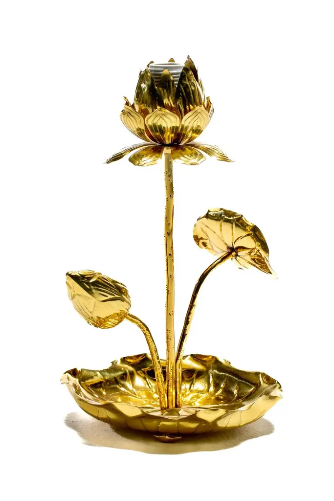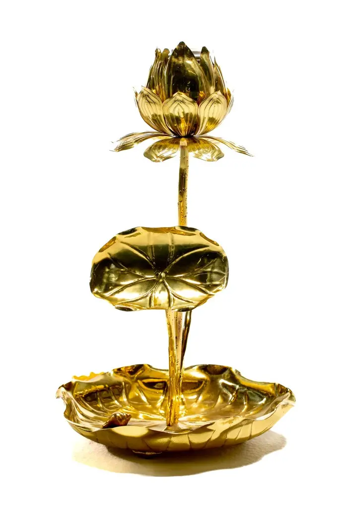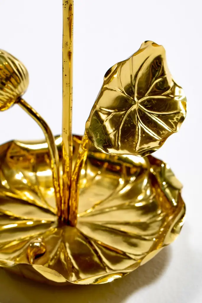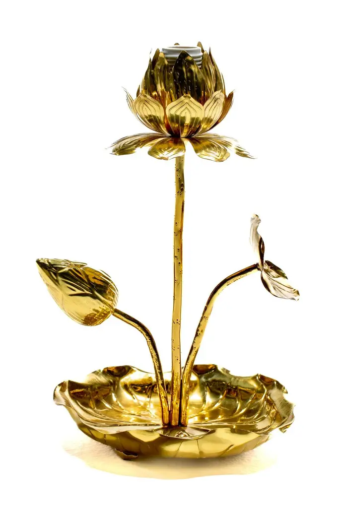 Petite Hollywood Regency Lotus Flower Lamp In Polished Brass By Feldman C. 1960