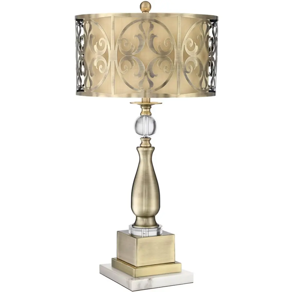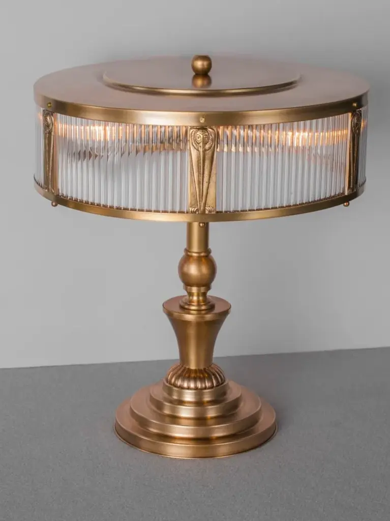 Petitot IX is a table lamp made of brass available in different finishes.Finishes: Antique, Shiny brass, Matt brass, Shiny nickel, Matt nickelCapacity : 3x75 W E27This collection is our largest one, showcasing finest French art deco be it a chandelier, wall light, pendant, ceiling fitting, table lamp or floor light. This is where almost unadorned brass, frosted glass plate and fixed tubes made of crystal meet, resulting in lavish and impressive lighting. The collection is inspired by French designer Petitot.