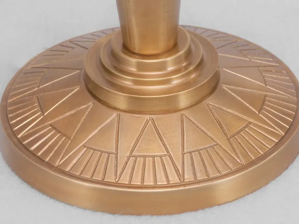 Petitot VII is a table lamp made of brass available in different finishes.Finishes: Antique, Shiny brass, Matt brass, Shiny nickel, Matt nickelCapacity : 1x75 W E27This collection is our largest one, showcasing finest French art deco be it a chandelier, wall light, pendant, ceiling fitting, table lamp or floor light. This is where almost unadorned brass, frosted glass plate and fixed tubes made of crystal meet, resulting in lavish and impressive lighting. The collection is inspired by French designer Petitot.