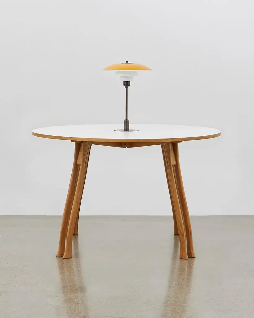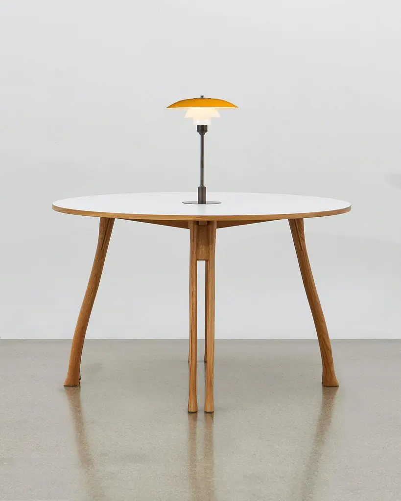 Inspired by the humble axe handle, Poul Henningsen has utilized this familiar and tactile shape to provide the basis for the legs of the versatile table.This piece of furniture stays true to the fundamental values that drove its designer: it is a table that has multiple functions within its environment – as an occasion table, a table to sit at, a table for display and for meetings, a table for work and always for daily use. The PH Axe Table can take it all with its solid structure and eight legs. The table legs can be delivered in natural oak or black oak. The table plate comes in laminate, black oak or natural oak. As an extra option, the PH axe table is available with a removable wood cover in the middle of the table top. Upon removing the wood cover, PH 3 ½ - 2 ½ table lamp in a special construction with cable outlet below the frame can be installed and plugged in to the pre-installed cable that is hidden in to one of the table legs. The PH Lamp is available in green, red, yellow and white.The PH Lamp adds functional value and highlights the design of this unique piece of furniture designed by PH in the first half of the 1950s.