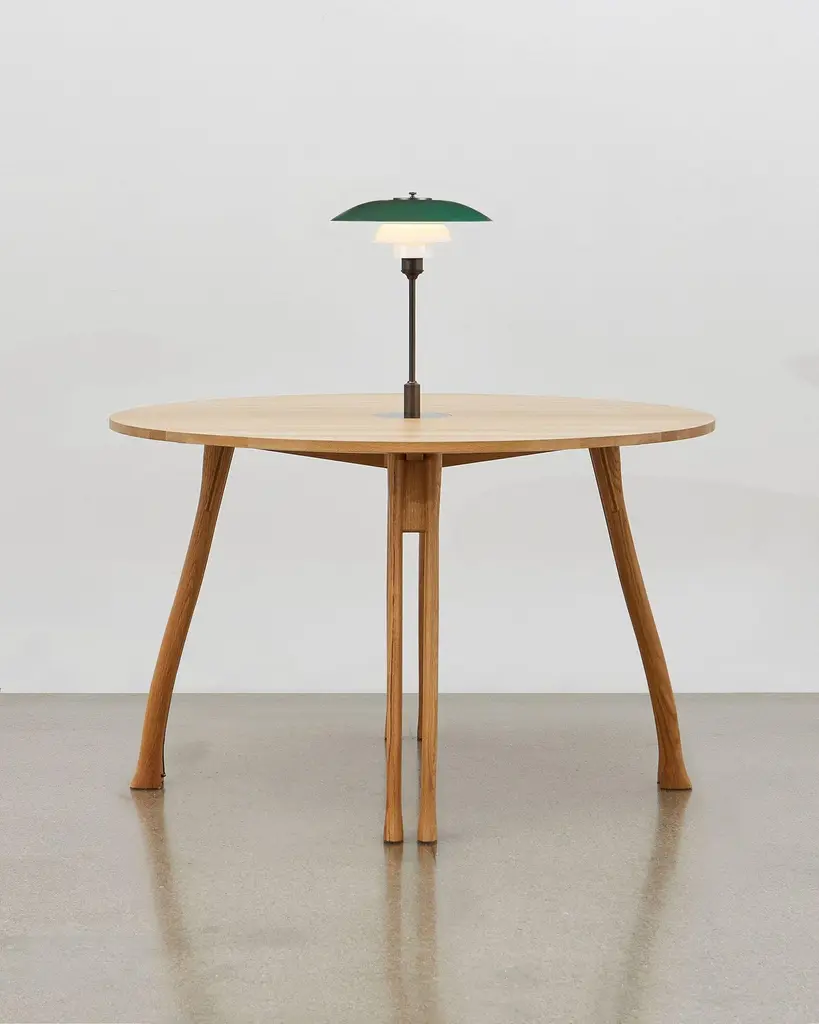 Inspired by the humble axe handle, Poul Henningsen has utilized this familiar and tactile shape to provide the basis for the legs of the versatile table.This piece of furniture stays true to the fundamental values that drove its designer: it is a table that has multiple functions within its environment – as an occasion table, a table to sit at, a table for display and for meetings, a table for work and always for daily use. The PH Axe Table can take it all with its solid structure and eight legs. The table legs can be delivered in natural oak or black oak. The table plate comes in laminate, black oak or natural oak. As an extra option, the PH Axe Table is available with a removable wood cover in the middle of the table top. Upon removing the wood cover, PH 3 ½ - 2 ½ Table Lamp in a special construction with cable outlet below the frame can be installed and plugged in to the pre-installed cable that is hidden in to one of the table legs. The PH Lamp is available in green, red, yellow and white.The PH Lamp adds functional value and highlights the design of this unique piece of furniture designed by PH in the first half of the 1950’s.