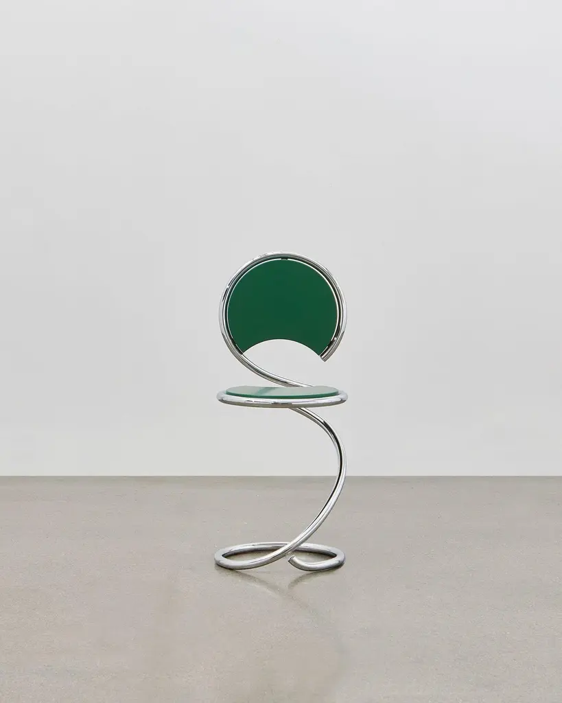 Ph Snake Chair, Chrome, Green Painted Satin Matt, Wood Seat/back, Visible Tubes