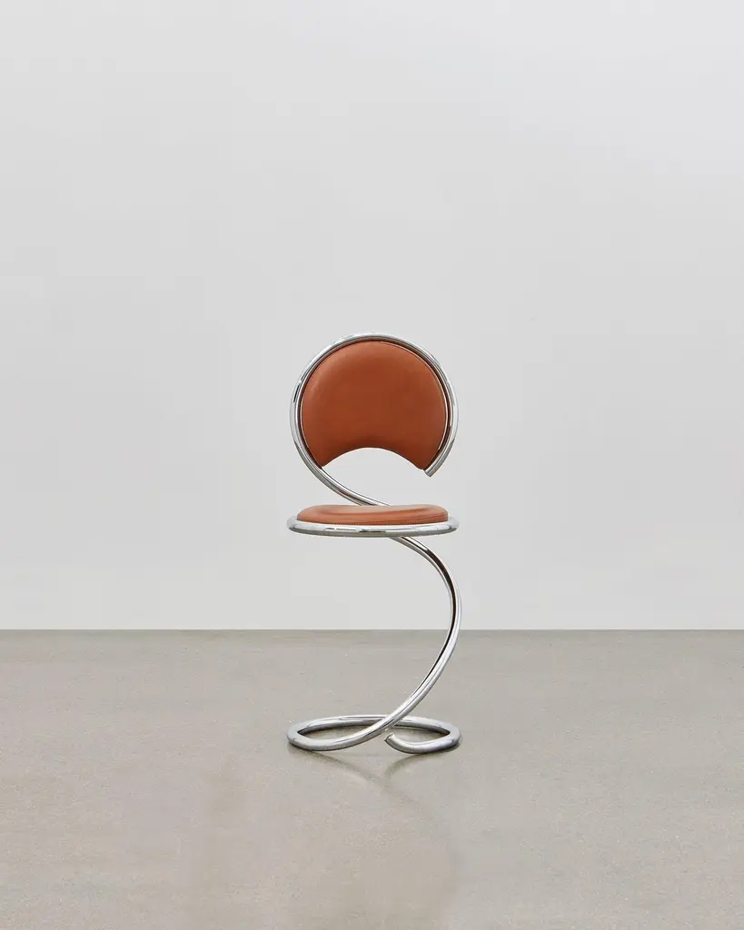 Ph Snake Chair, Chrome, Leather Extreme Walnut, Leather Upholstery, Visible Tube