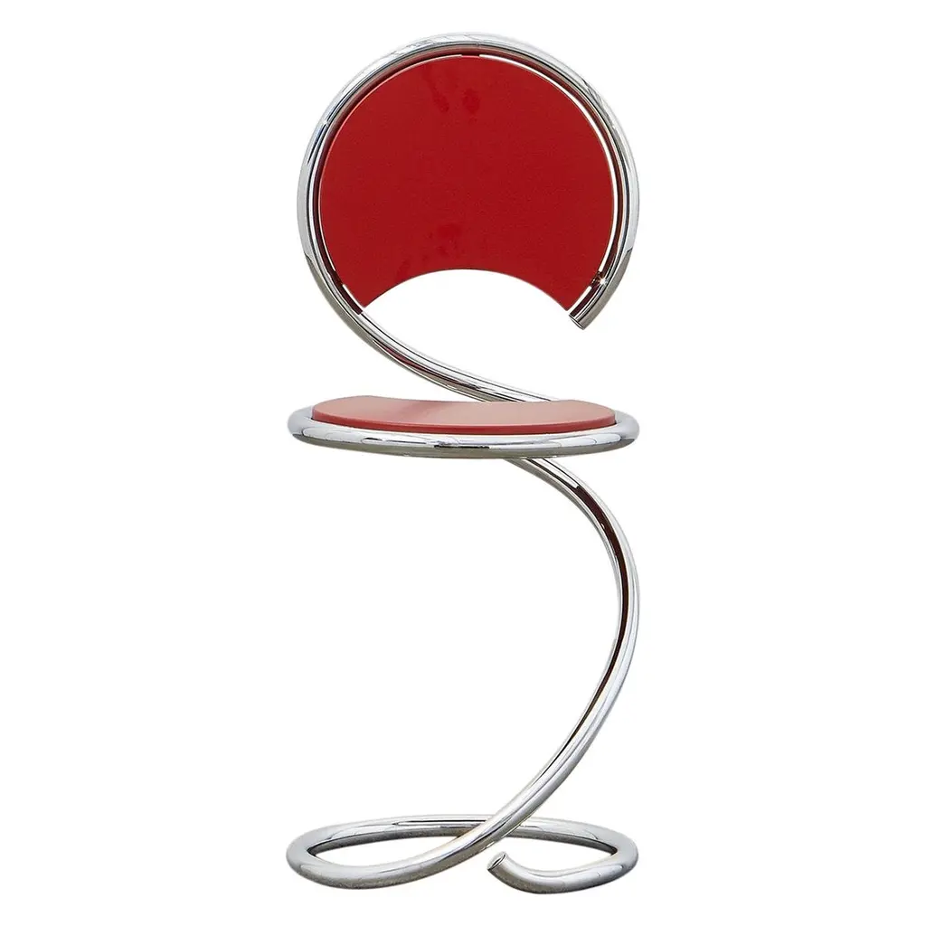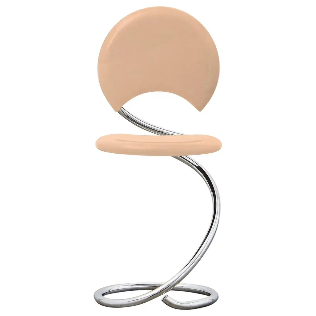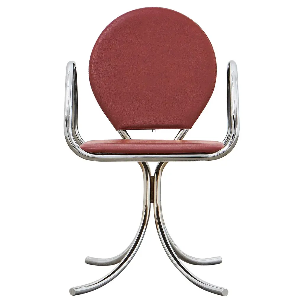 The PH snake chairs flowing lines within its steel tube design are inspired by the strong yet flexible body of a snake. It is multi-use and fits any room at home, in the apartment, in the office, with a function or simply as a piece of art to be admired for generations to come.The PH snake chair is available in chromed steel tubes and can be ordered with two types of leather upholstery finishes: with full upholstery around the steel tubes or with the steel tubes visible highlighting the form and shapes of the unique design. The leather can be found in 5 different colors: black, mocca, Indian-red, walnut and un-dyed.The PH snake chairs is also available with a wooden seat in the same colorways as the popular 3 ½ – 2 ½ Table lamps: red, yellow, green, black and white.
