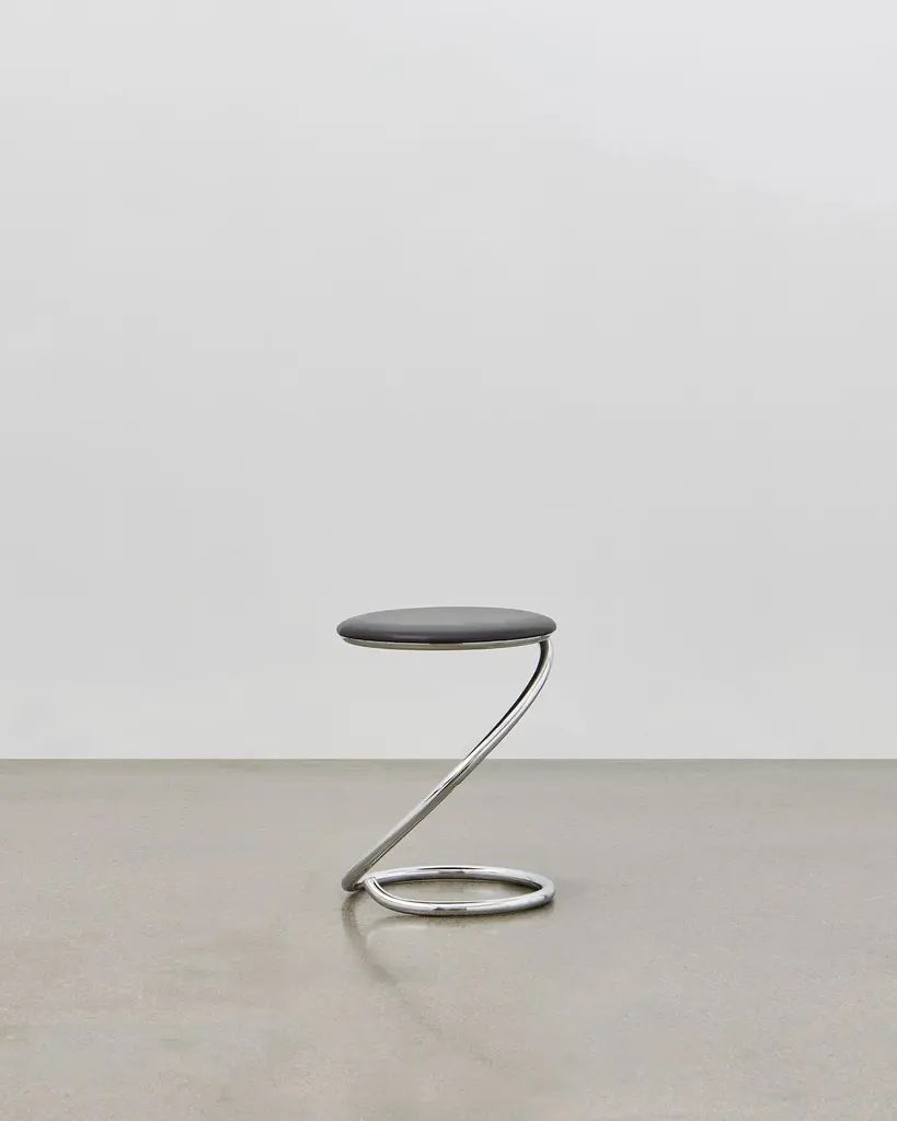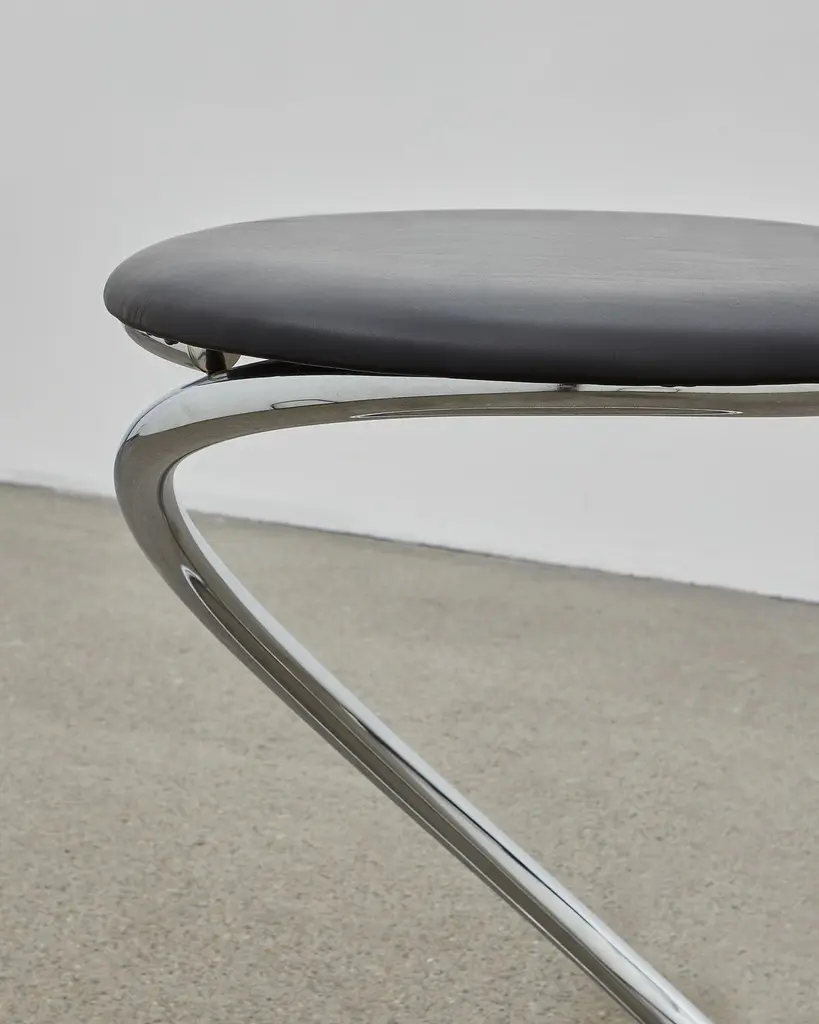 Ph Snake Stool, Chrome, Leather Extreme Black, Full Leather Upholstery