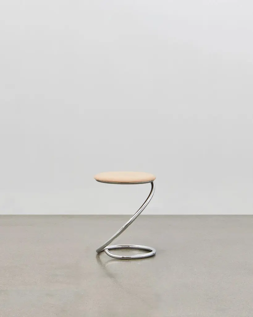Ph Snake Stool, Chrome, Leather Natural Un-Dyed, Full Leather Upholstery