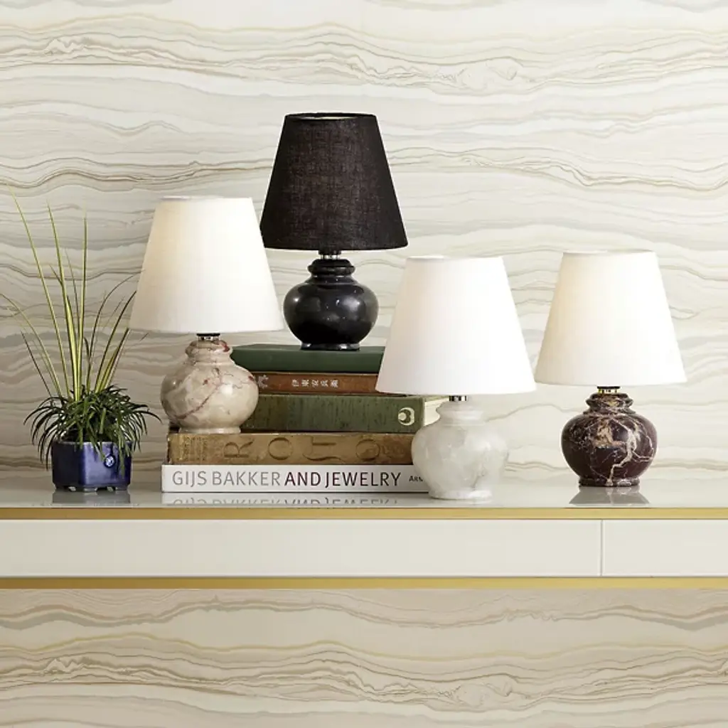 Give your room a feeling of jubilance with the Piccolo Mini Table Lamp Sconce by Currey & Company. Exquisite marble has been worked into a round, curvaceous form that nicely complements your current Mid-Century Modern tabletop. This lamp boasts a cylindrical shade of linen that is home to a bulb that produces a soft glow. Your ambiently lit room creates a light-hearted atmosphere befitting the table lamp’s musically inspired namesake.